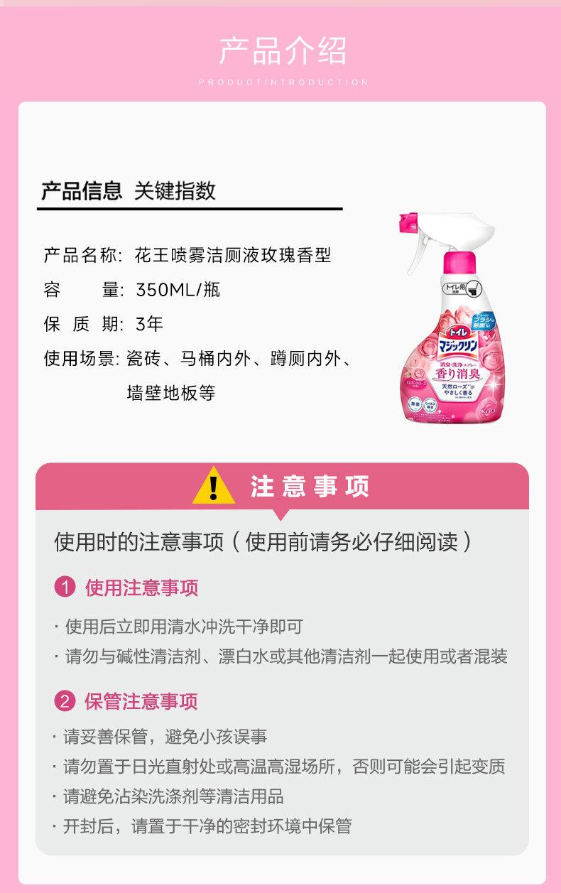 花王 马桶清洁喷雾350ml(玫瑰香)新款