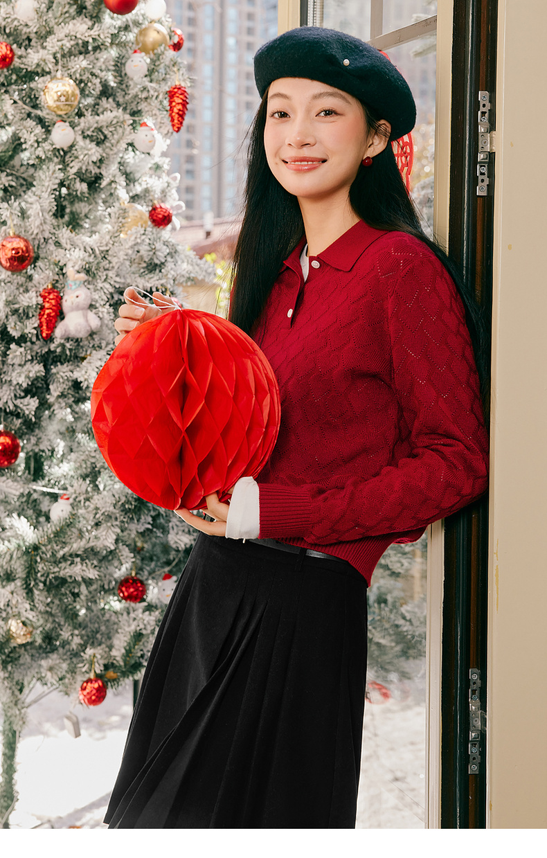 【商场同款】诗凡黎polo领套头针织衫2025春冬新款上衣3FC130011