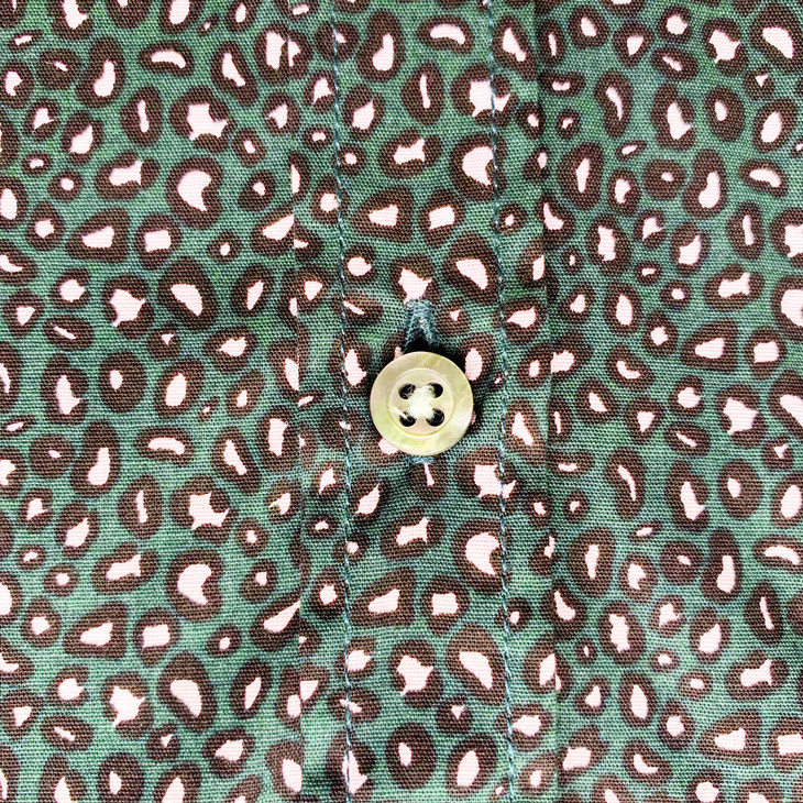 Marco Azzali 墨绿棉混纺豹纹印花长袖衬衫 C3917700