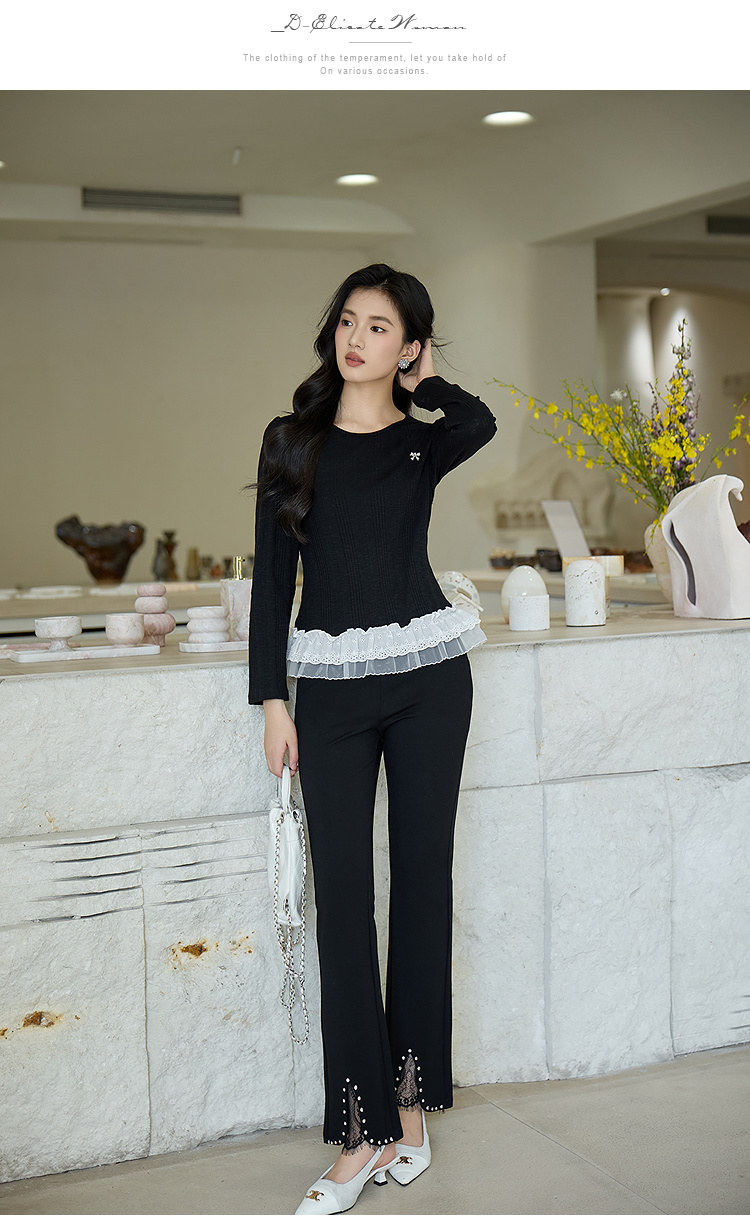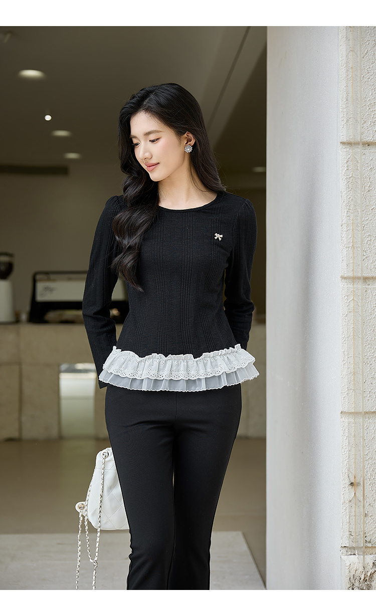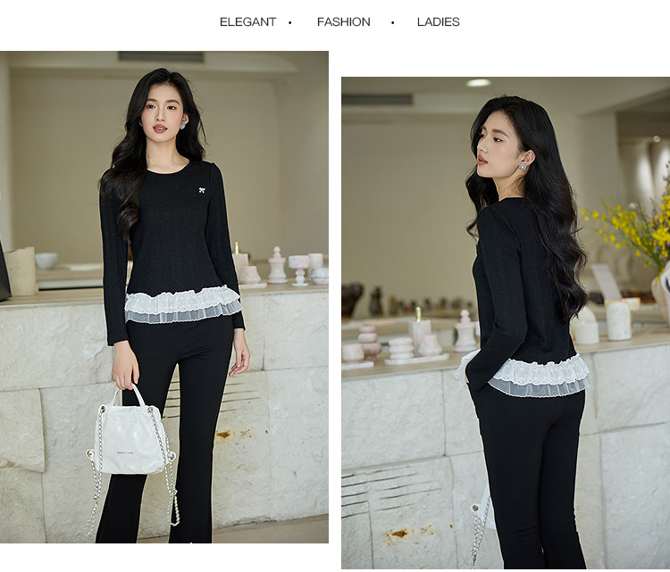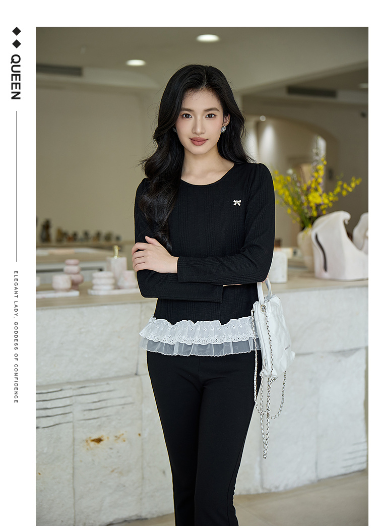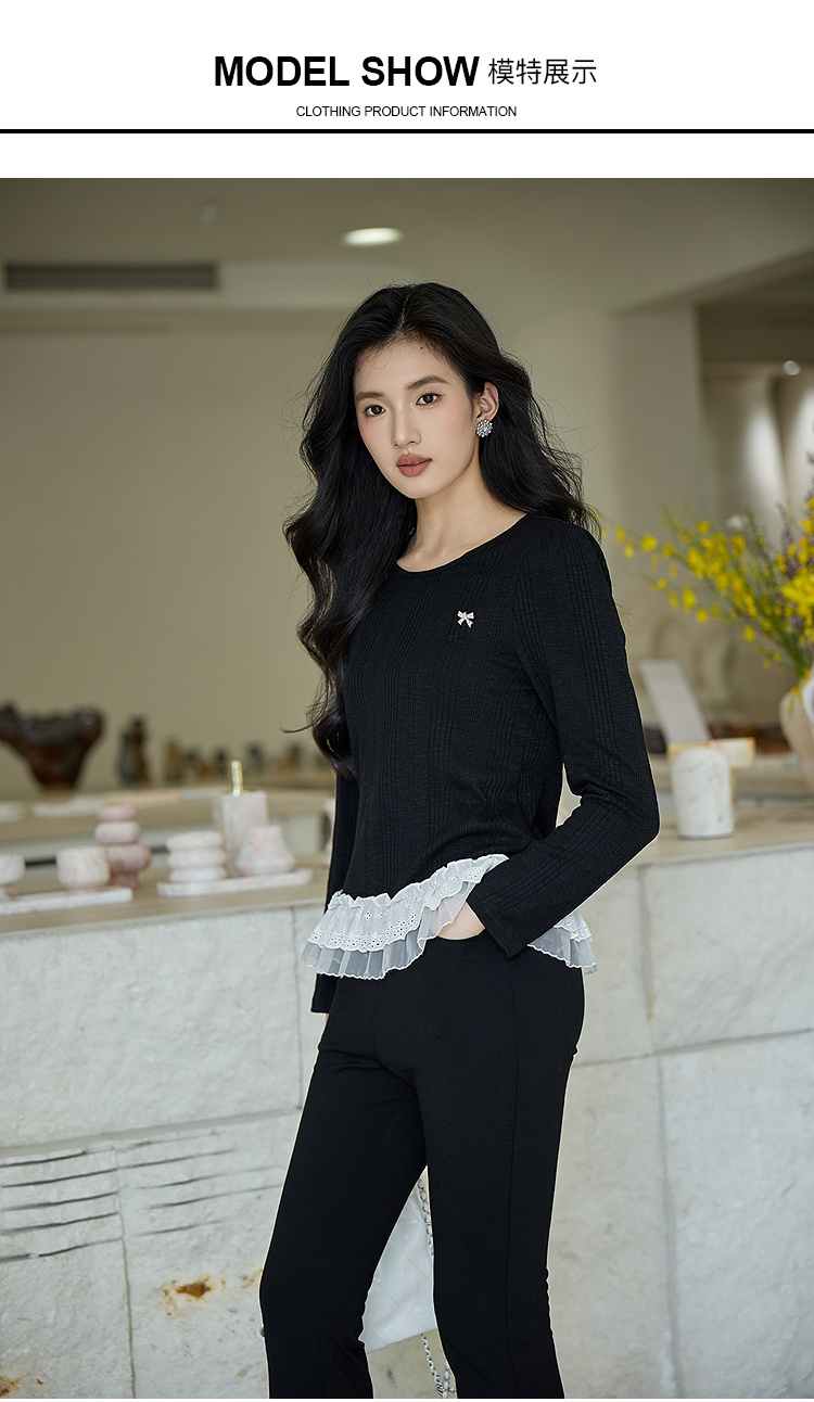 奢姿大码女装2025秋季时尚减龄蕾丝拼接针织衫胖妹妹气质圆领上衣9953153631