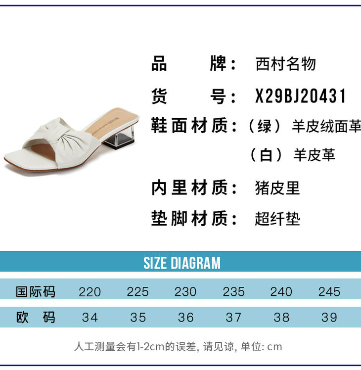 西村名物夏季新品水晶跟蝴蝶结优雅拖鞋X29BJ20431