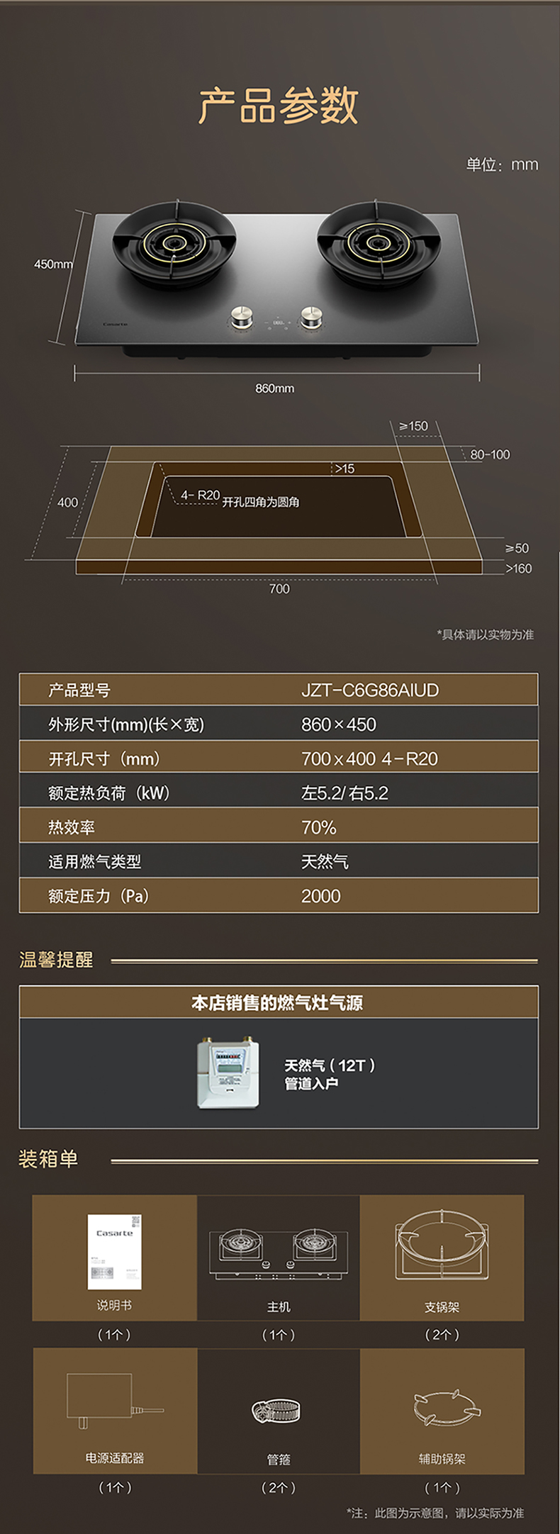 【美居】卡萨帝 燃气灶 JZT-C6G86AIUD 商品图12