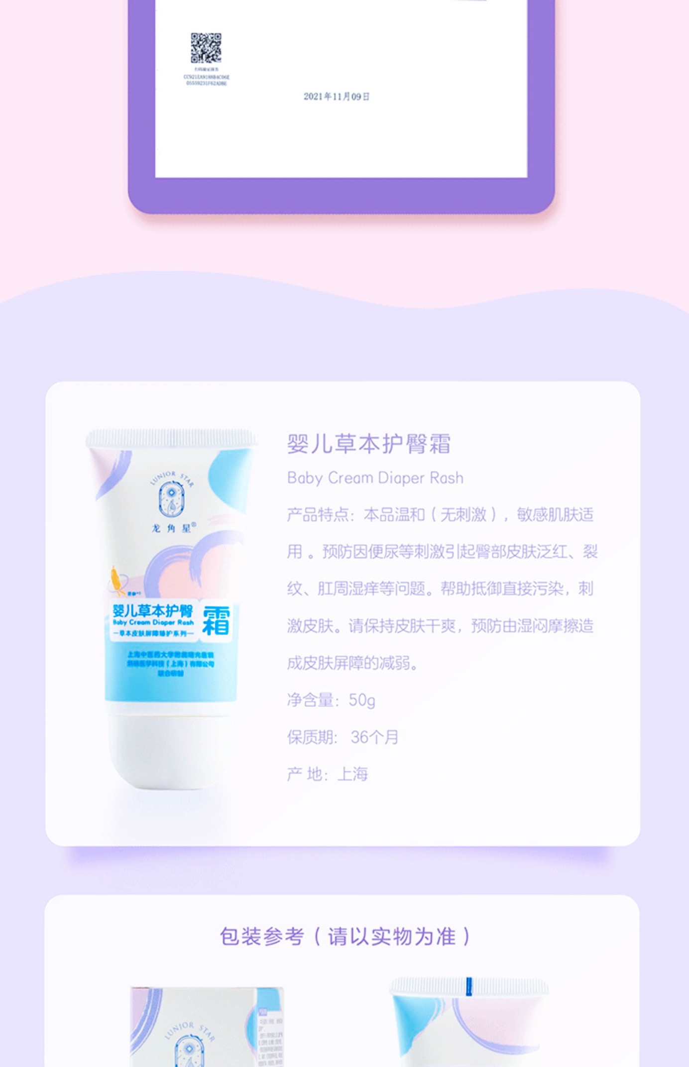 【婴儿草本护臀霜】 预防红屁屁,裂纹,肛周湿疹。