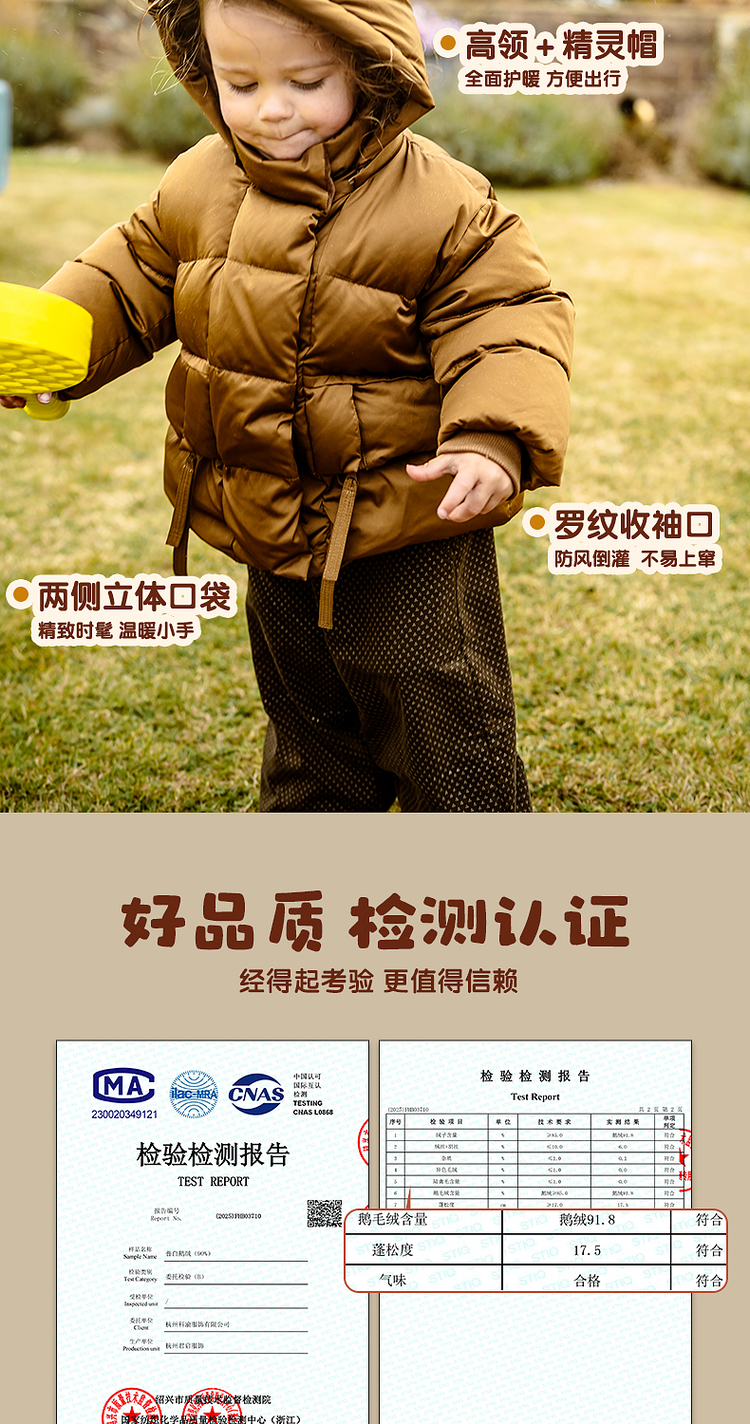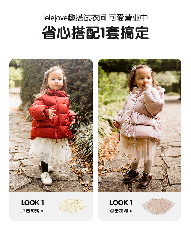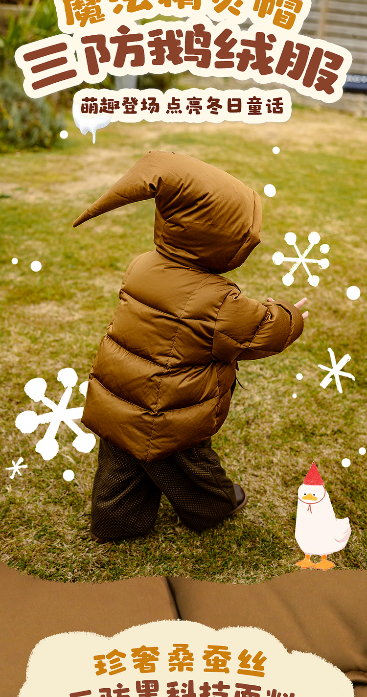 【云优选】鹅绒三防 lelejove儿童冬魔法精灵帽鹅绒服轻软光泽感蚕丝羽绒服