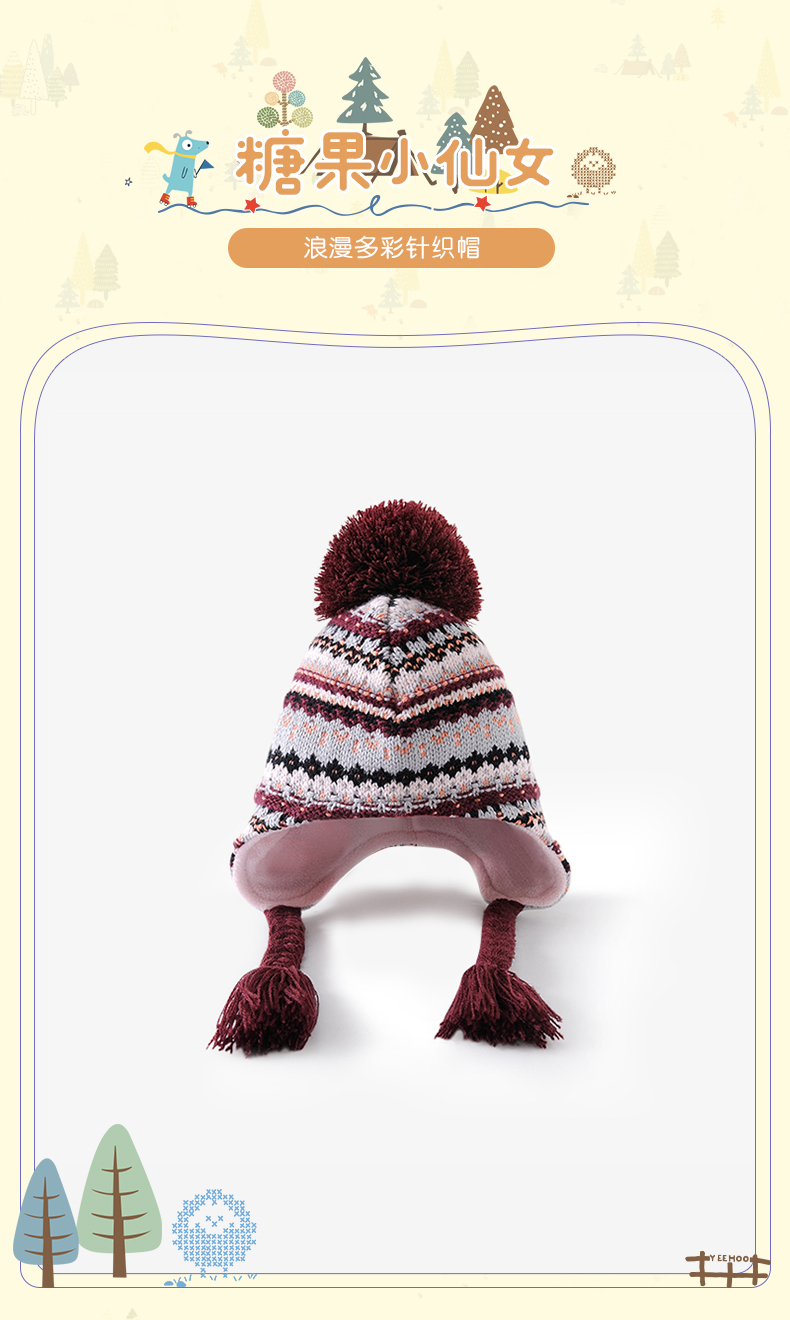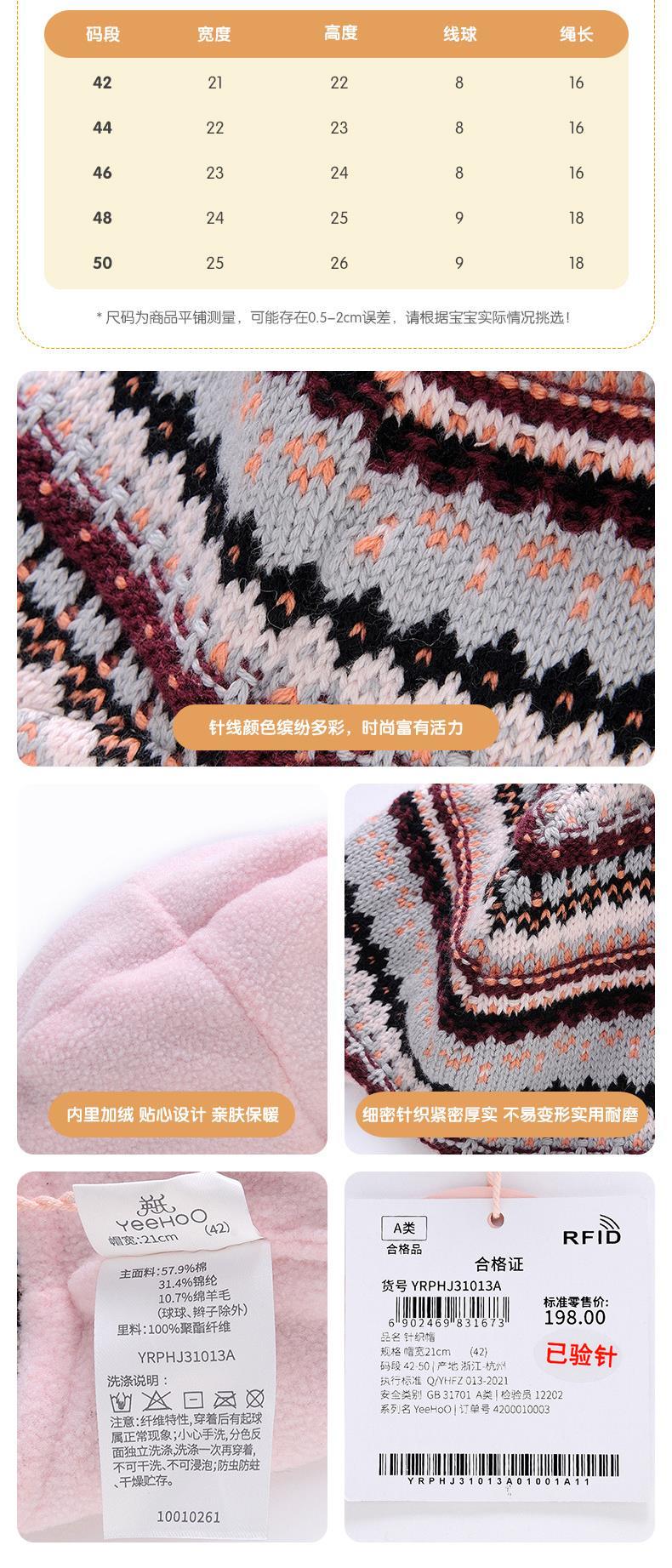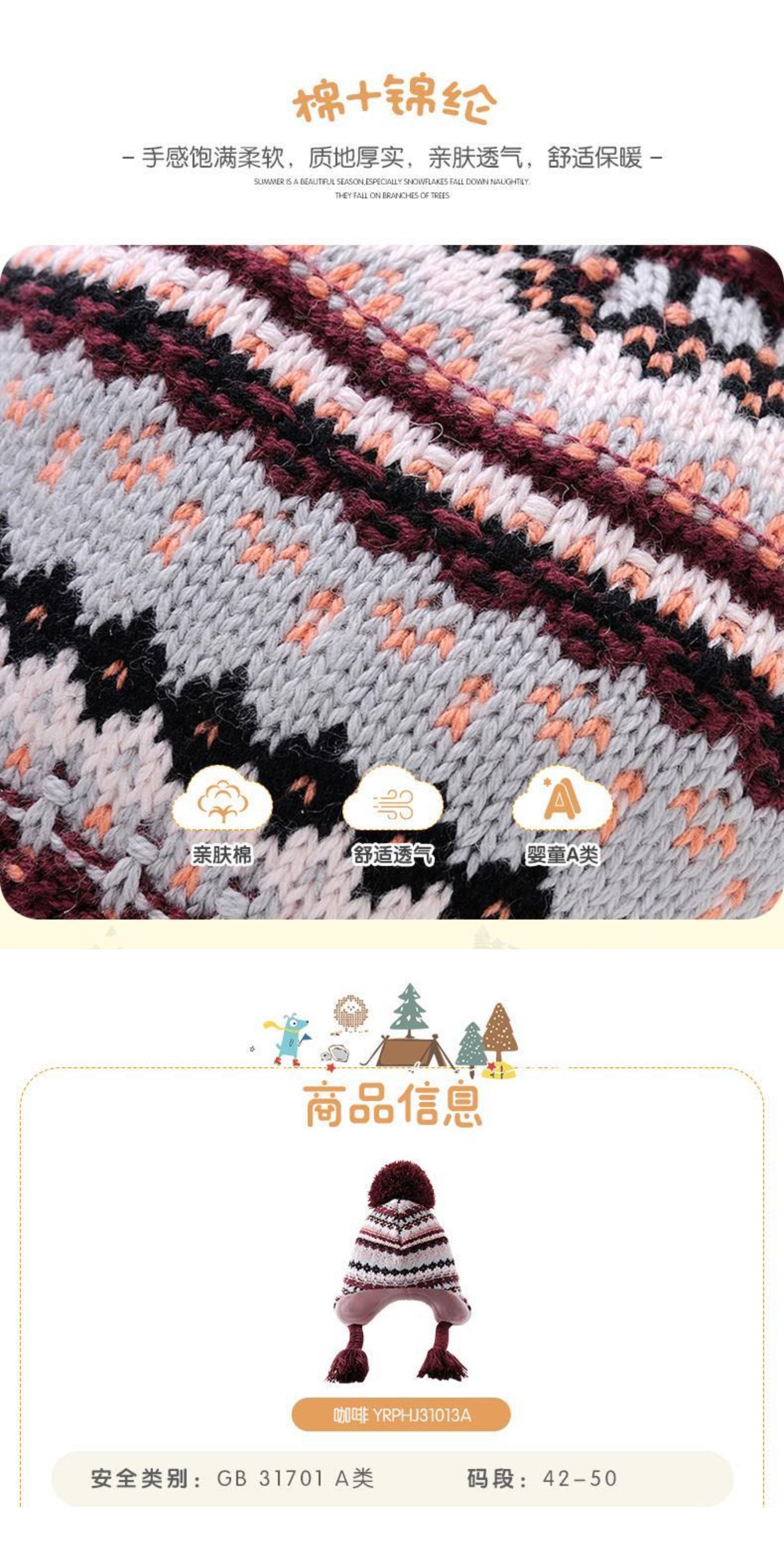英氏儿童针织帽子小孩保暖雷锋帽护耳贴面帽秋冬新款YRPHJ31013A