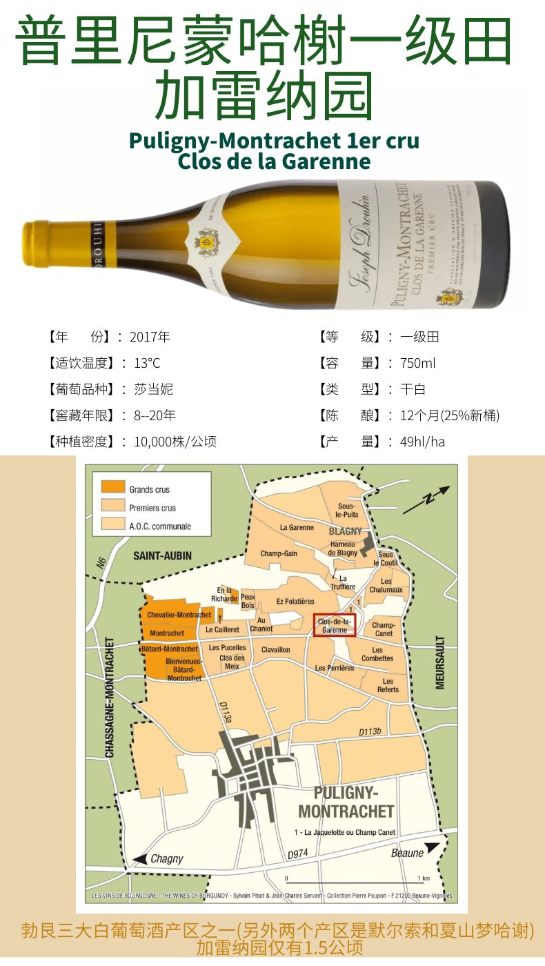 约瑟夫·杜鲁安Puligny-Montrachet 1er cru Clos de la Garenne 普里尼蒙哈榭一级田加雷纳园