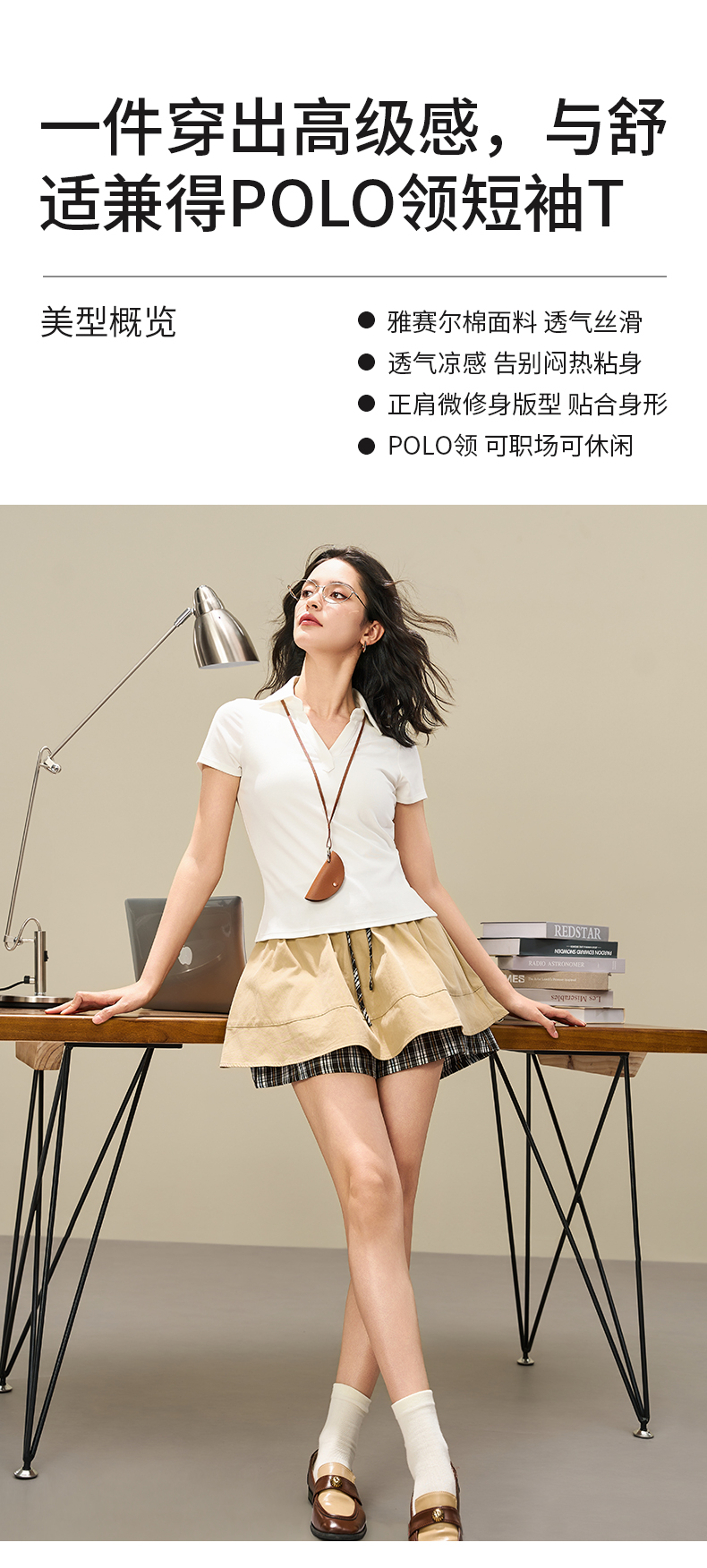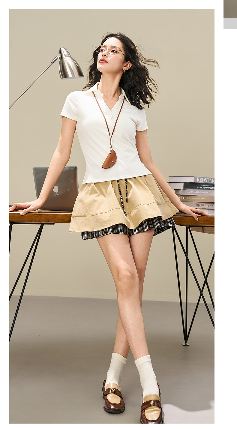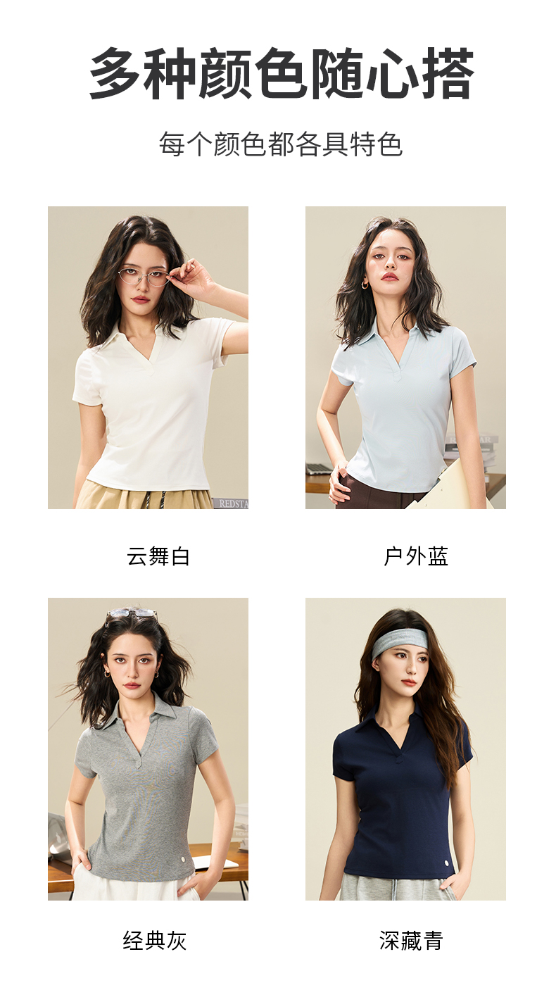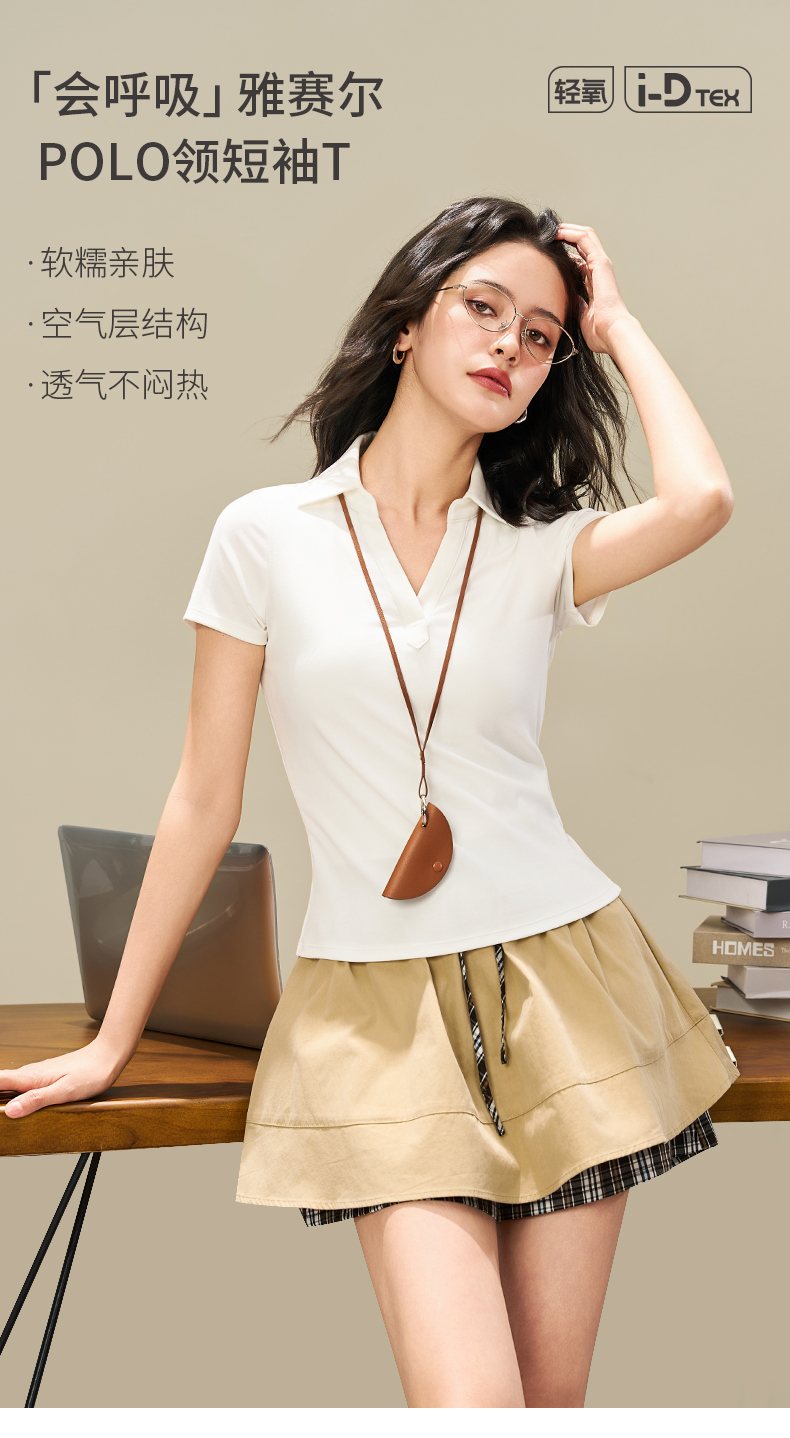 爱帝女士莱赛尔显瘦V领POLO衫夏季翻领短袖T恤