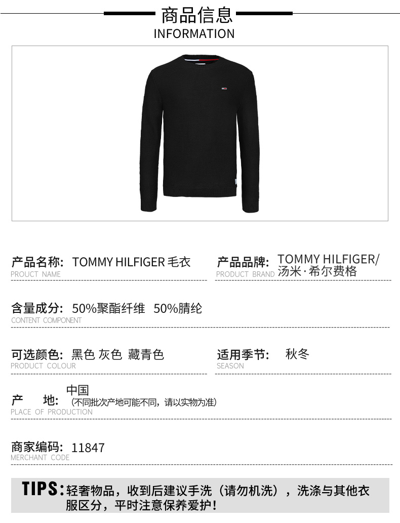 Tommy Hilfiger 男士简约弹力绵混保暖毛衣 11847