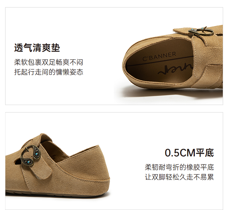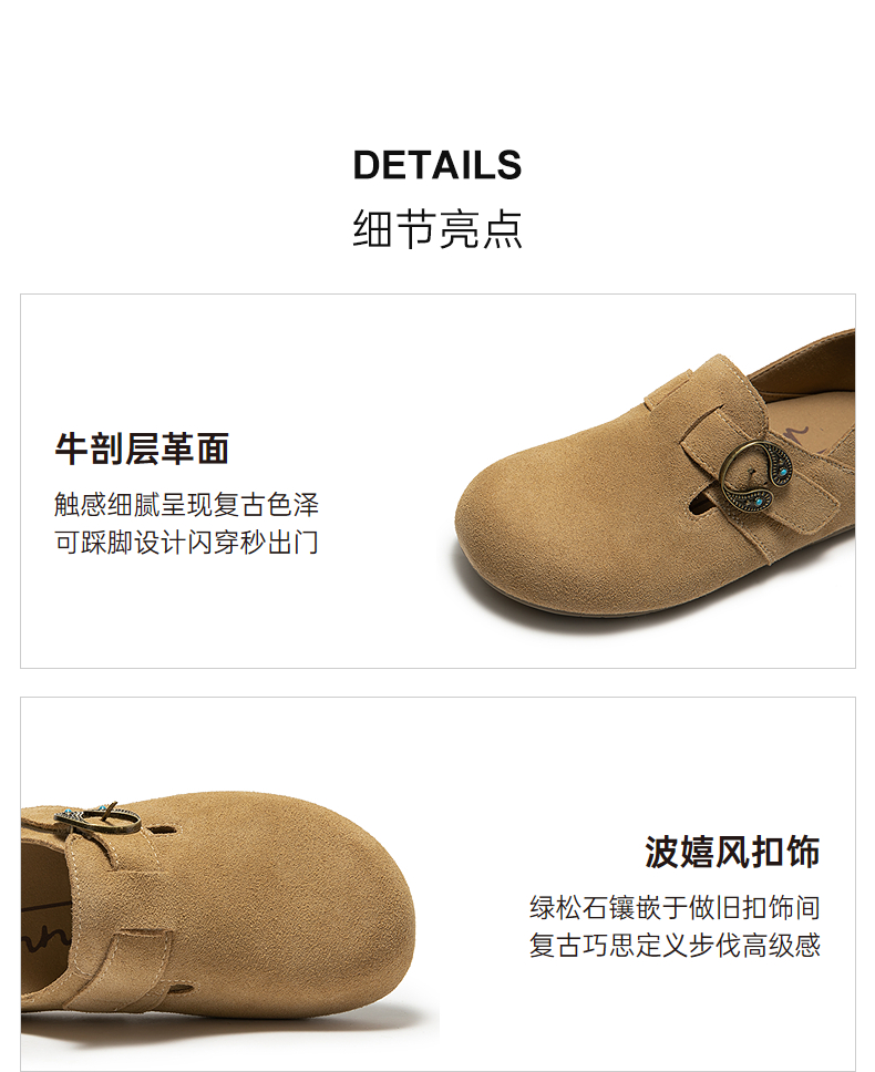 【上新】千百度全包薄底勃肯鞋女2026春季新款复古休闲深口单鞋A26110531
