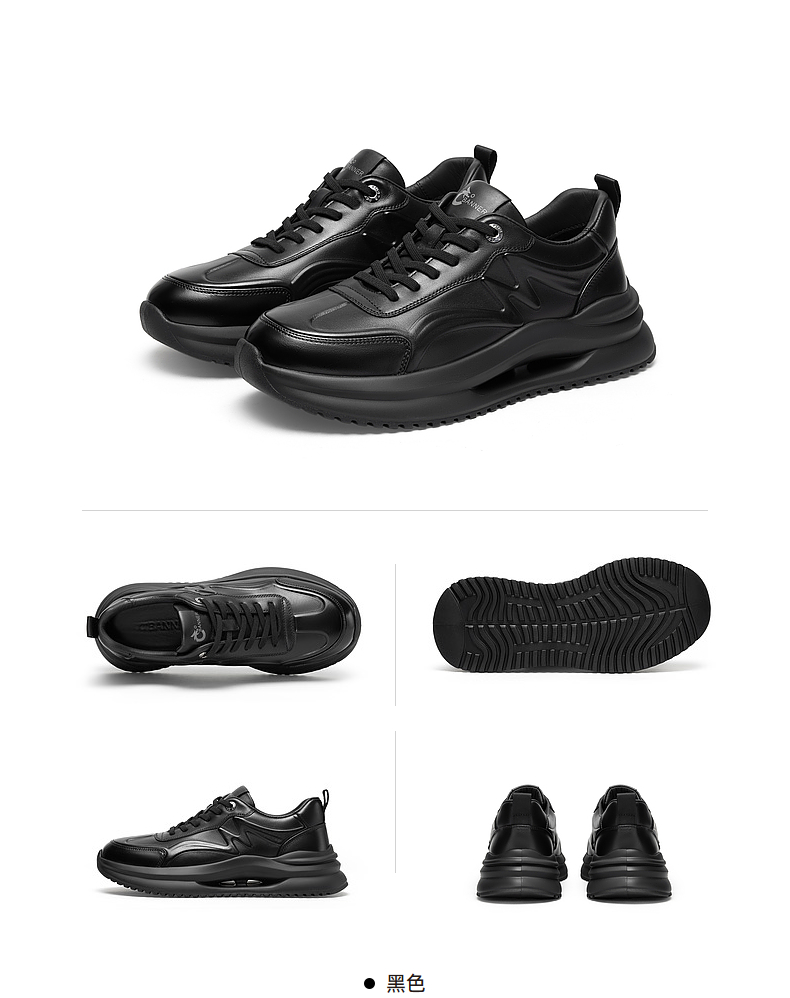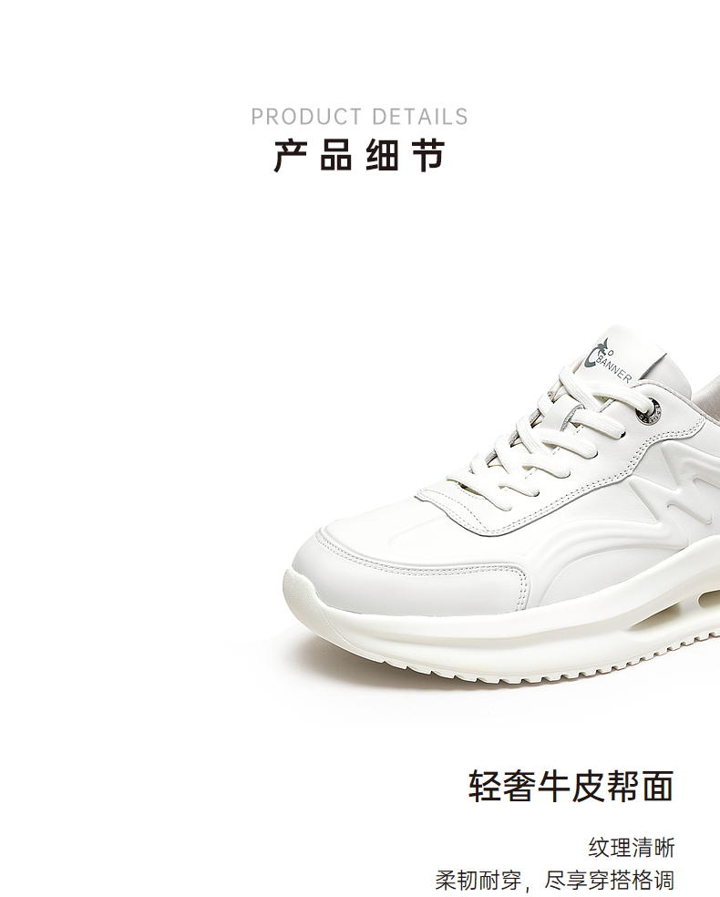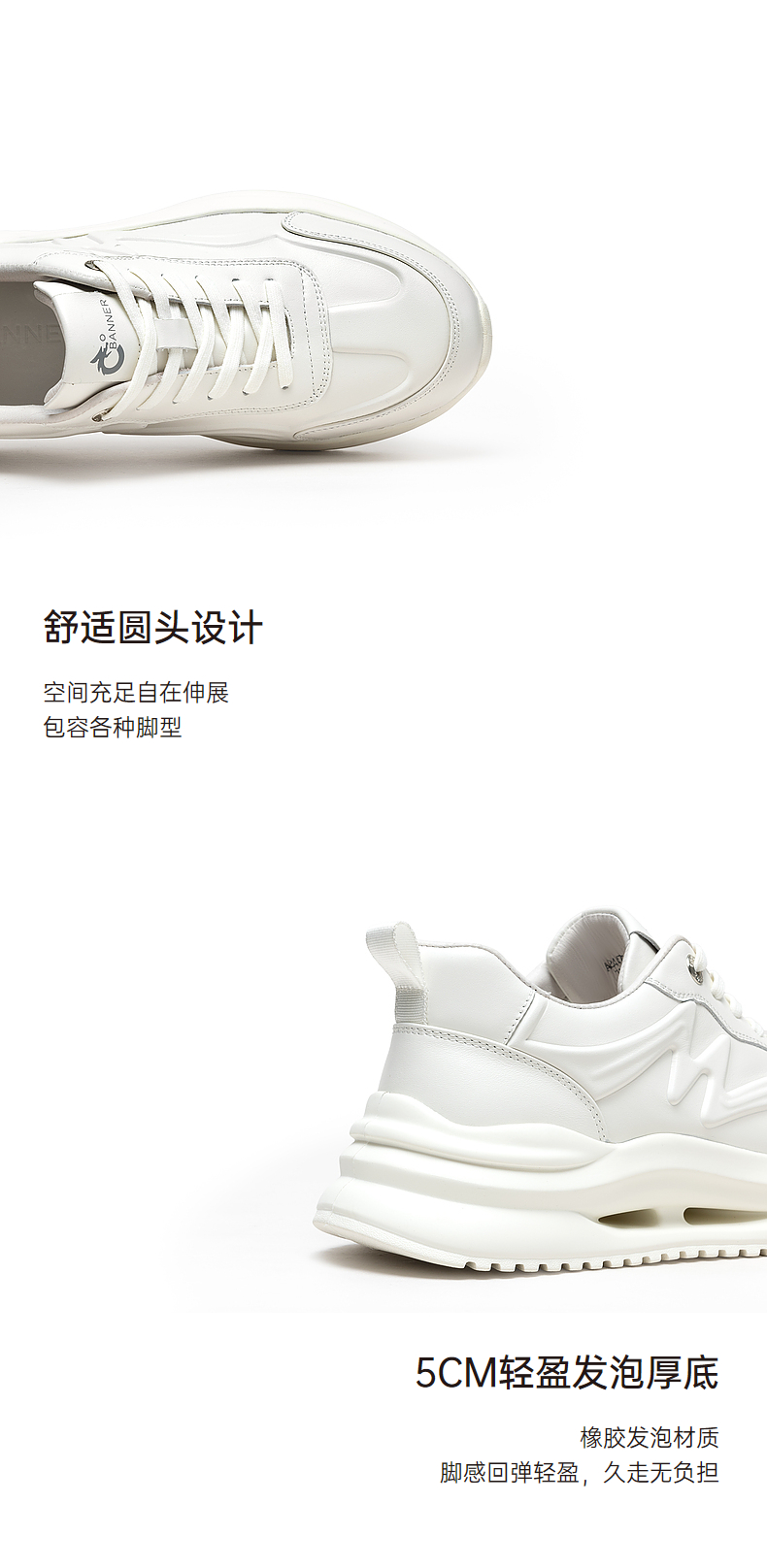 千百度男鞋真皮厚底时尚休闲鞋春季百搭增高户外减震运动鞋A24470192