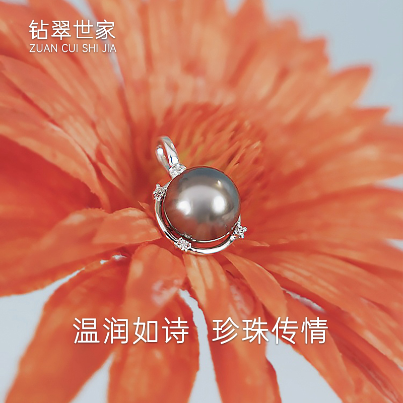【现货】18K金黑珍珠吊坠经典钻石背镶潮流款【尺寸9.2mm】 【一物一证书】