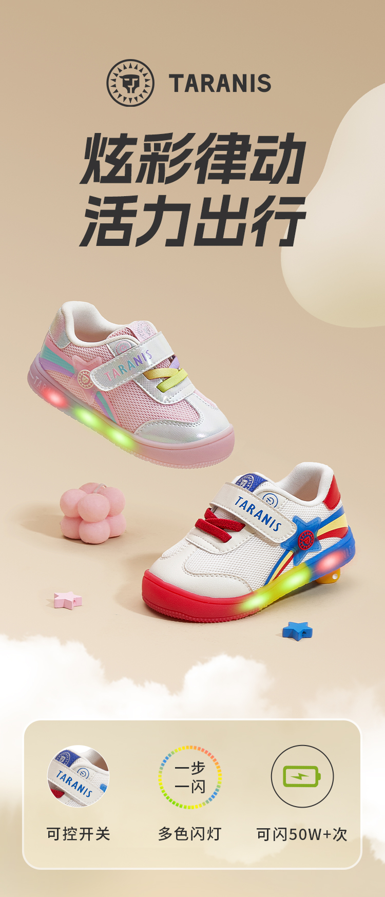 【新品】泰兰尼斯秋季小中童炫酷闪灯鞋板鞋T02T5C8257