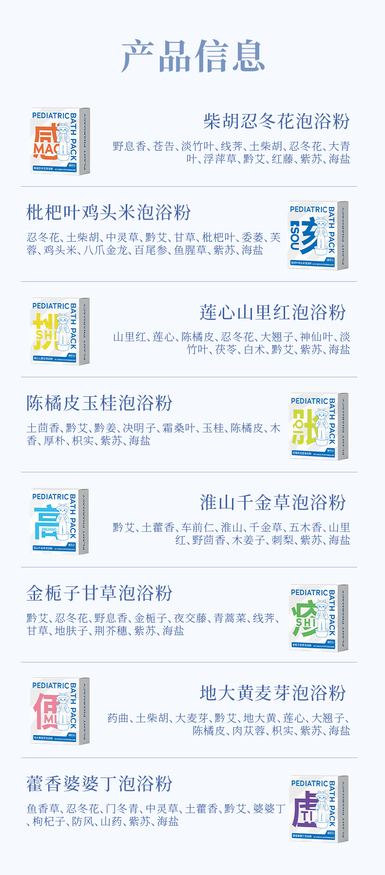 真不二8款儿童宝宝草本泡浴包一方一调养20g*7包*3盒赠散片*3