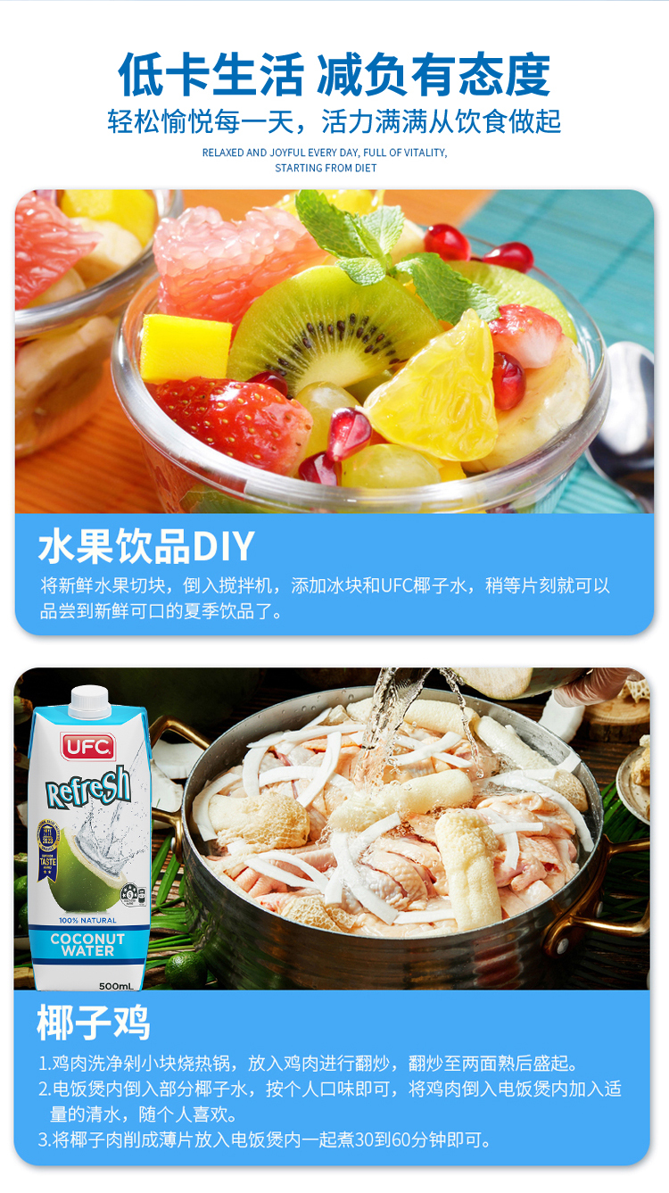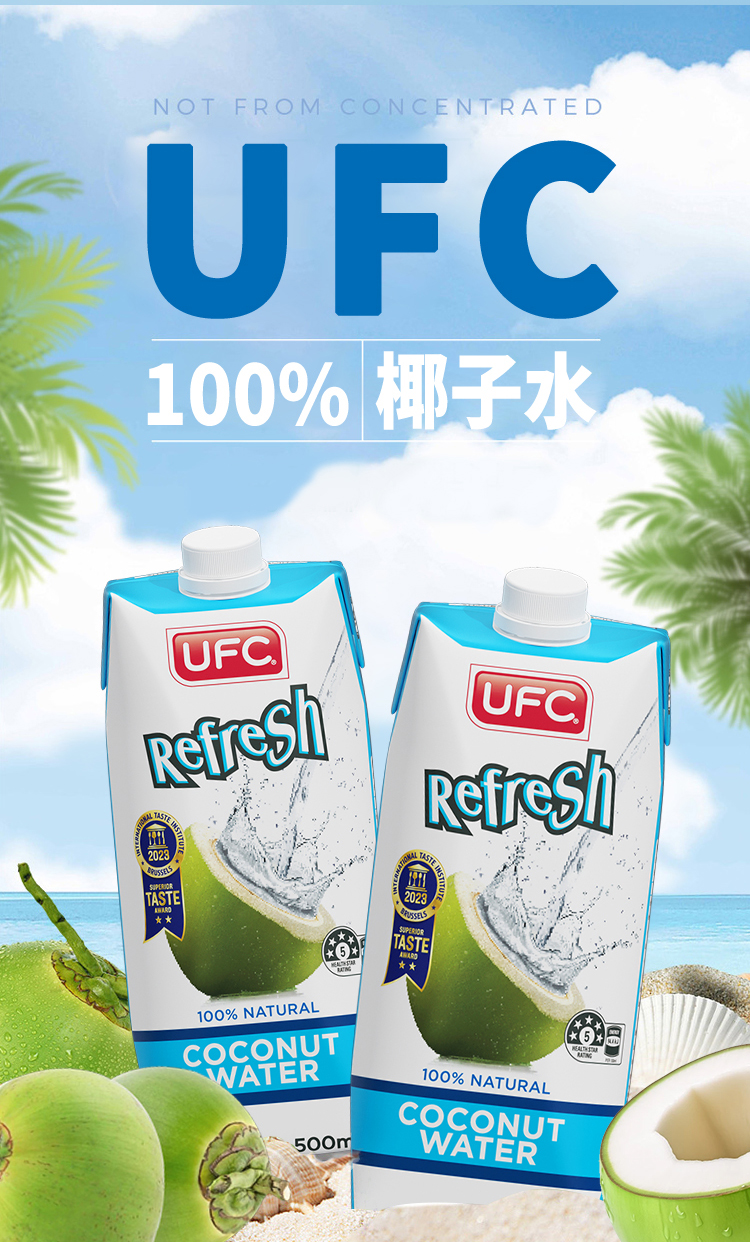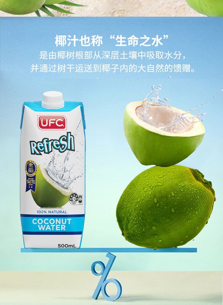 泰国UFC牌100%纯椰子水500ml/1000ml 汁清如水口感清爽 023851/023175