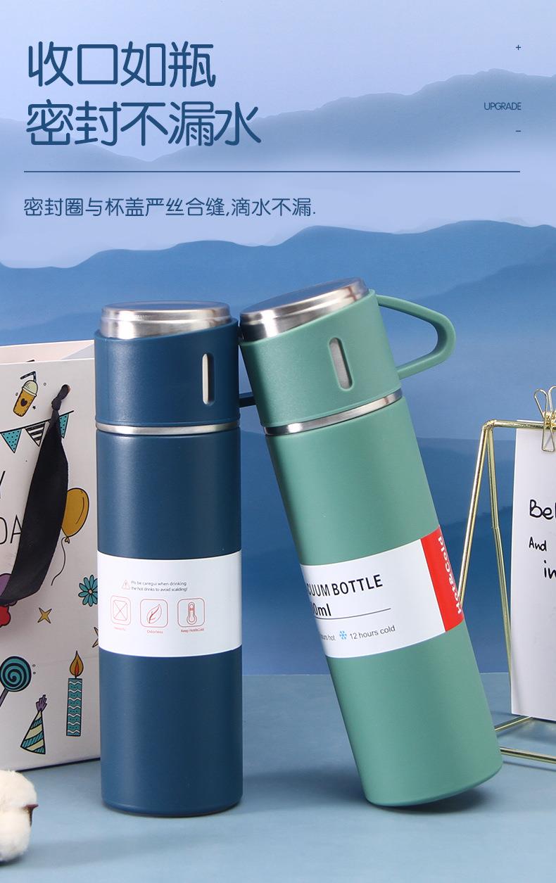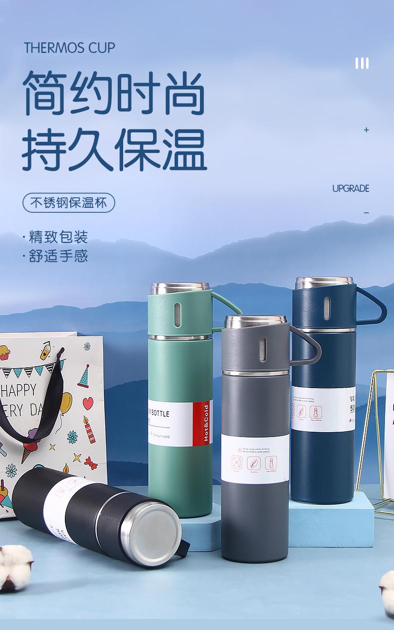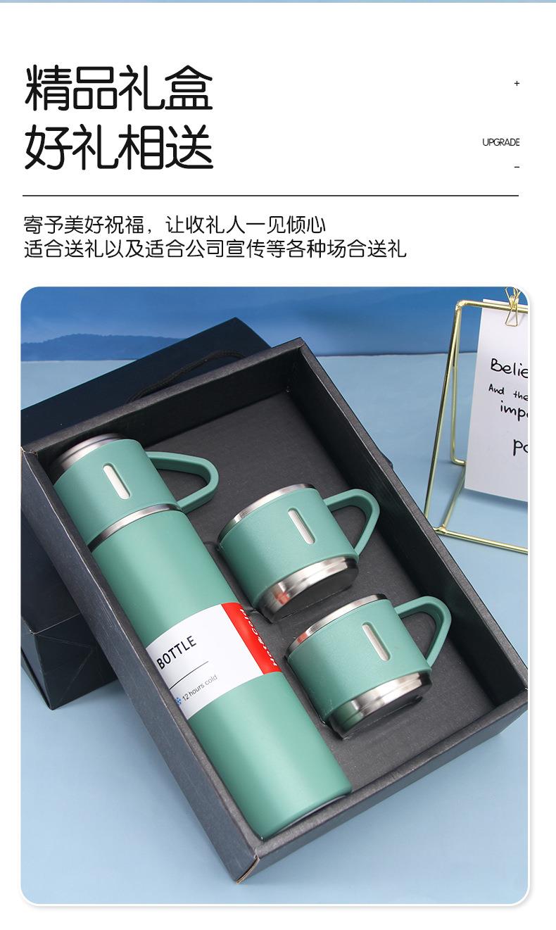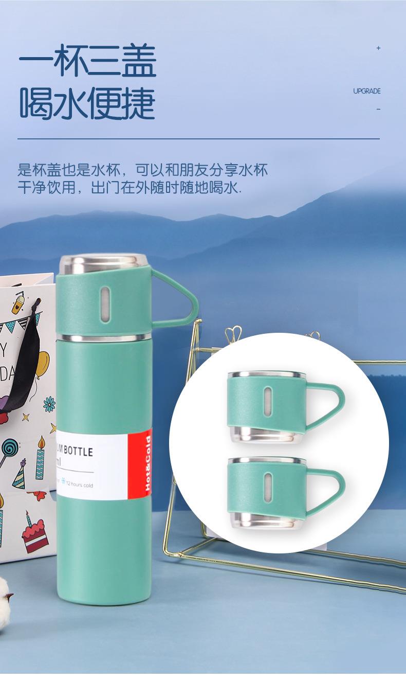全钢304不锈钢一杯三盖保温杯套装双层真空便携水杯男士礼品杯