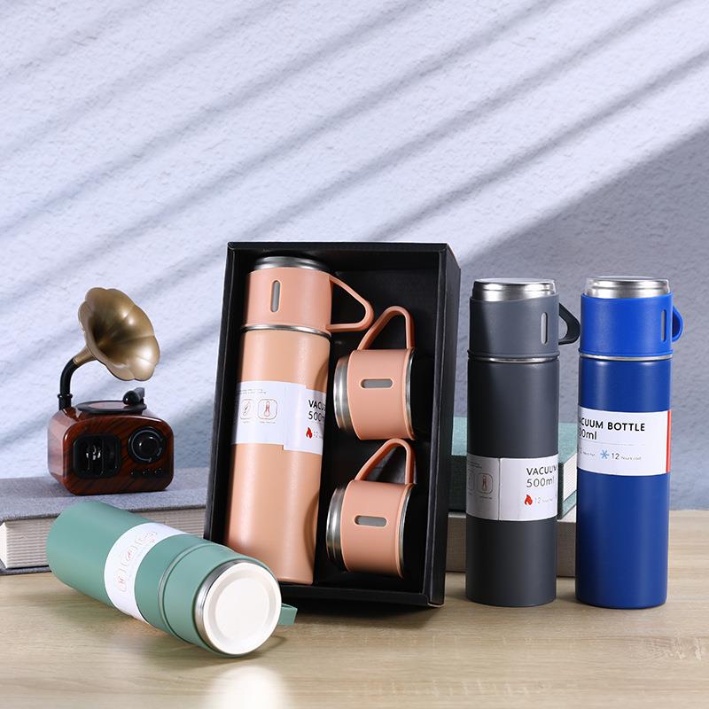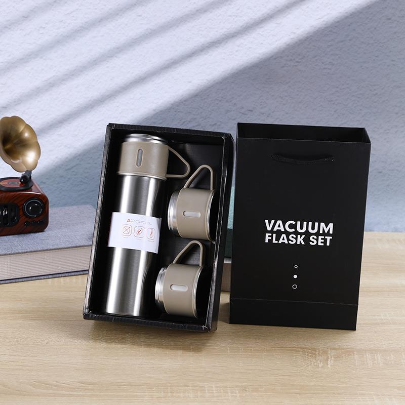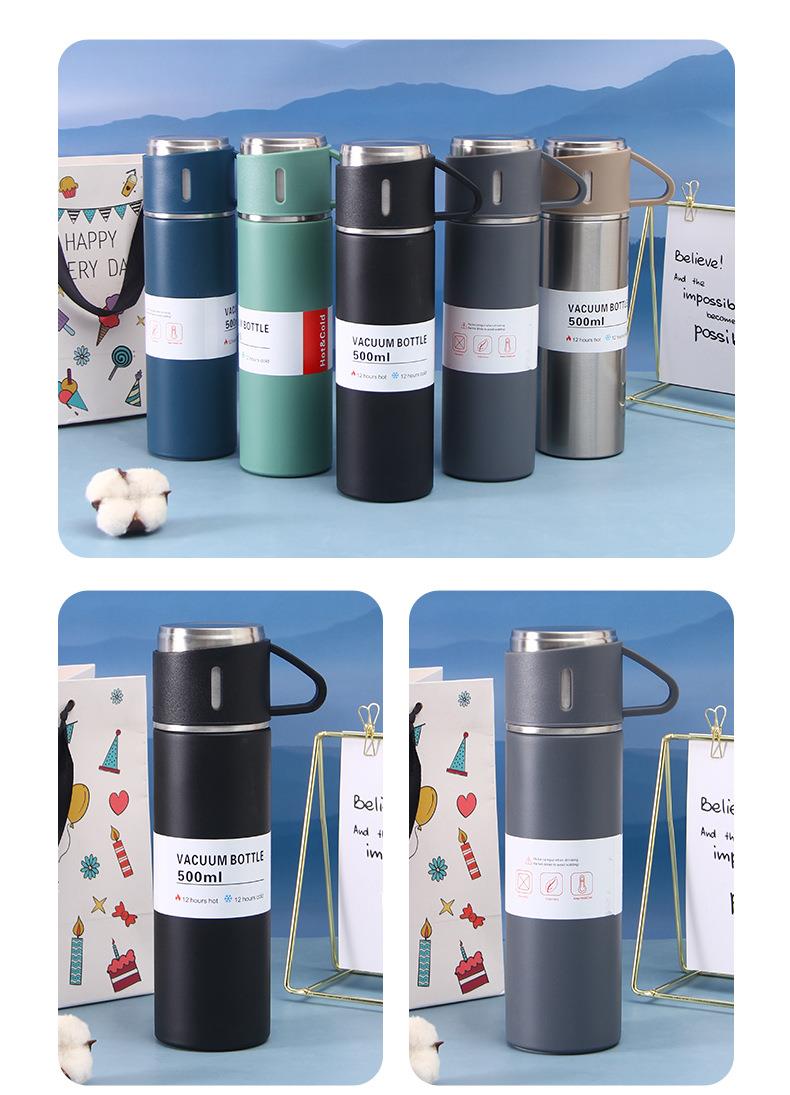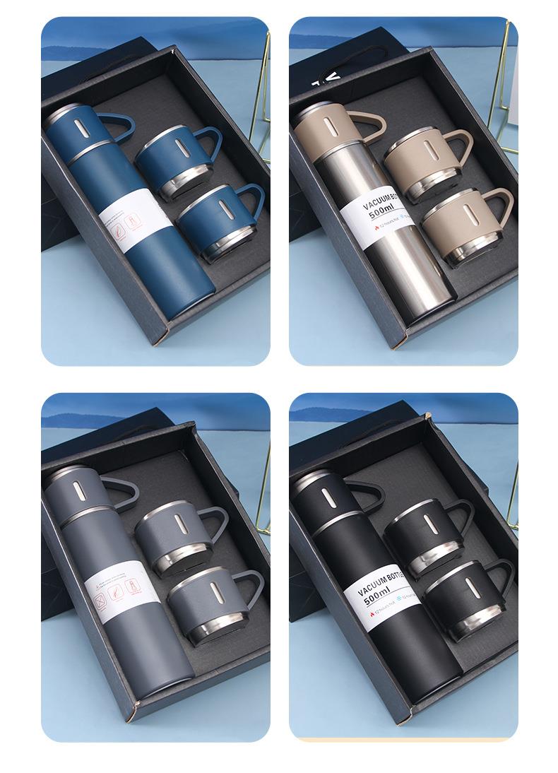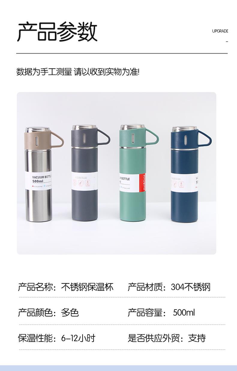 全钢304不锈钢一杯三盖保温杯套装双层真空便携水杯男士礼品杯