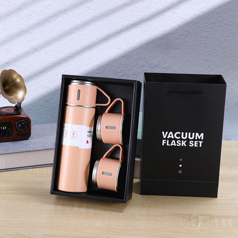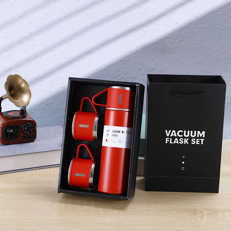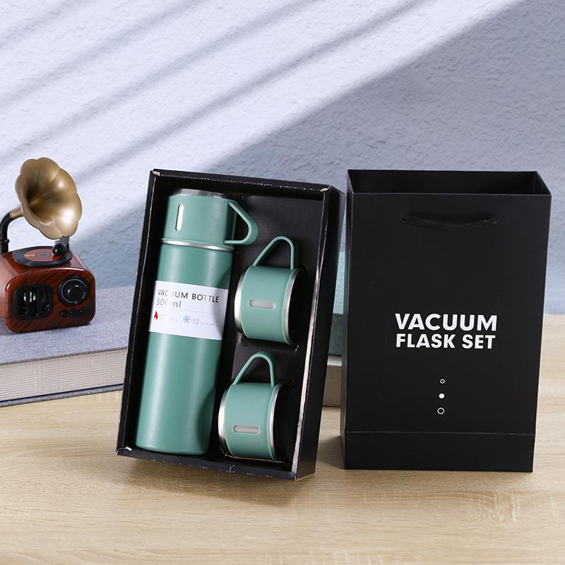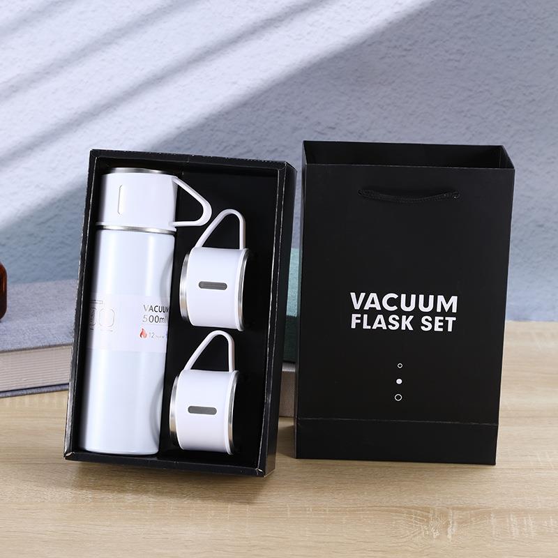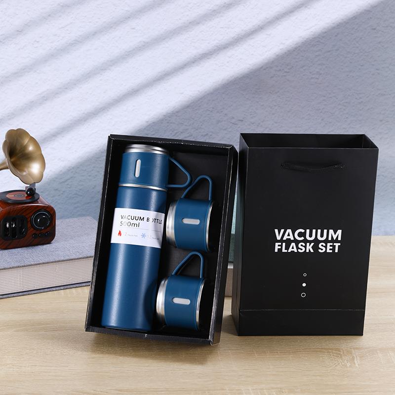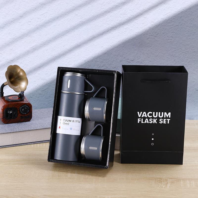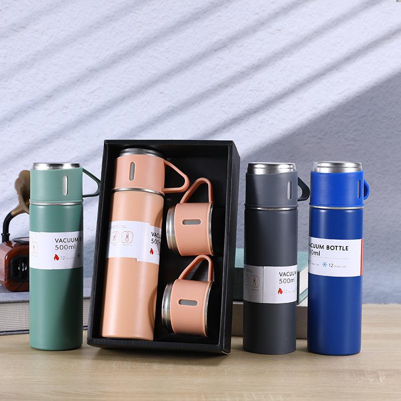 全钢304不锈钢一杯三盖保温杯套装双层真空便携水杯男士礼品杯