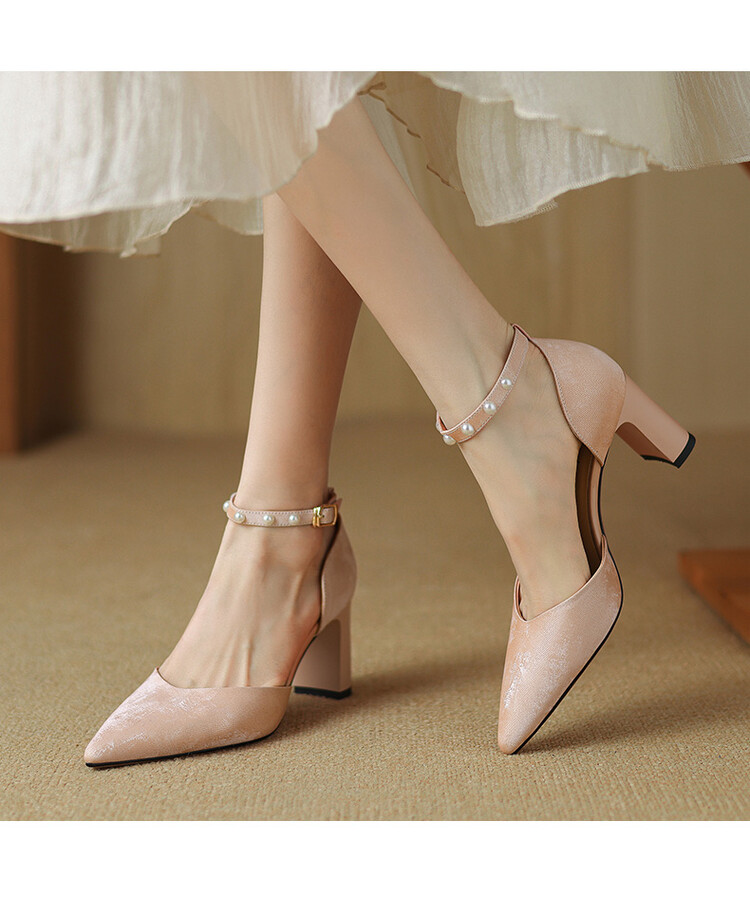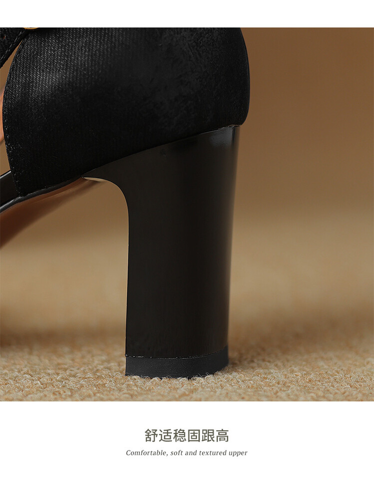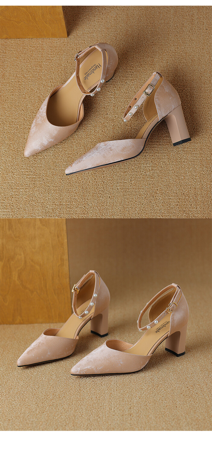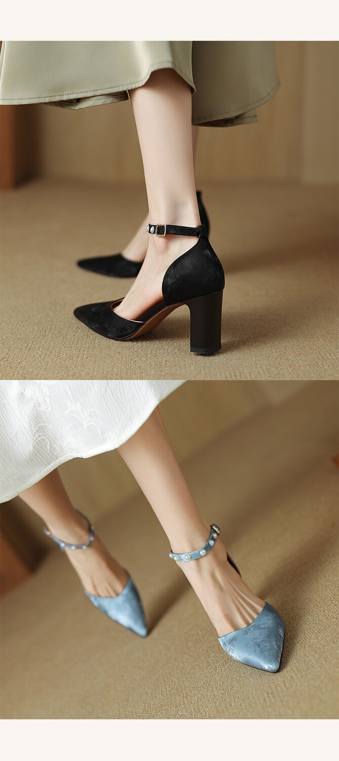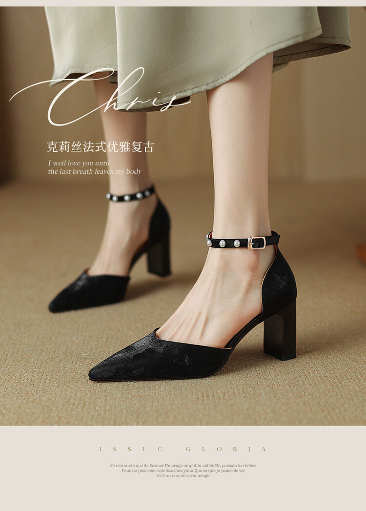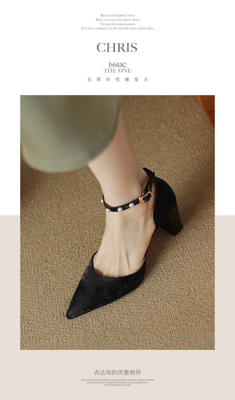 【预售5天】法式单鞋女中跟粗跟2024新款一字扣小高跟尖头百搭仙女风淑女鞋子LD&6738