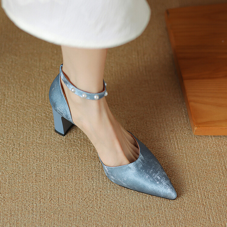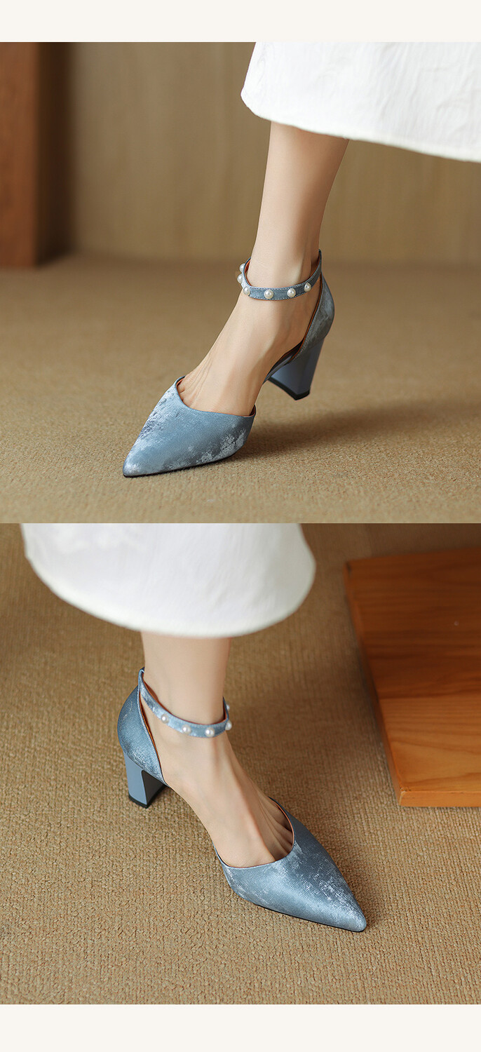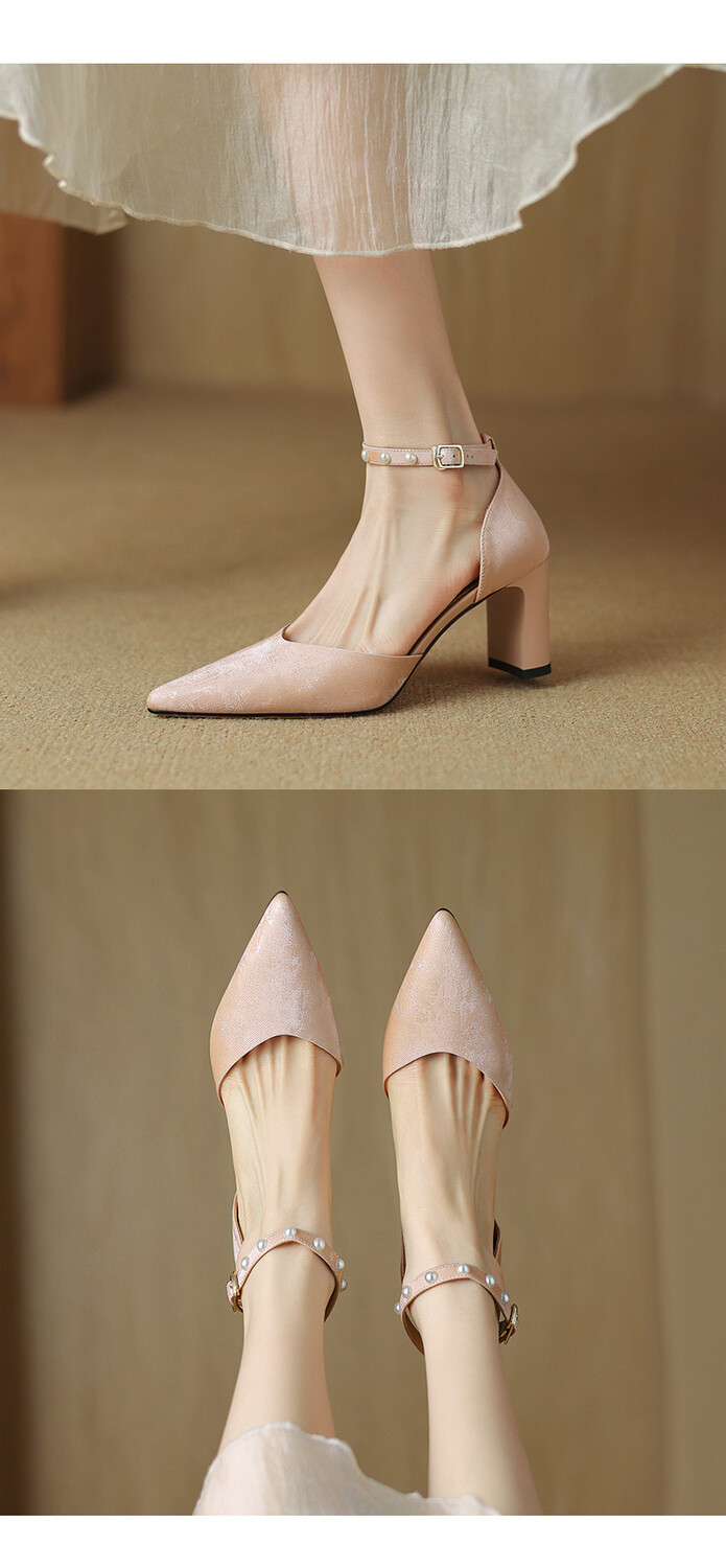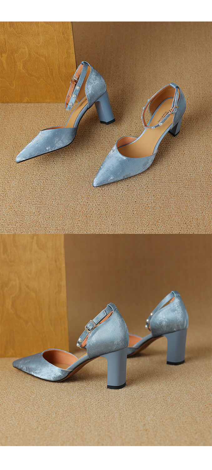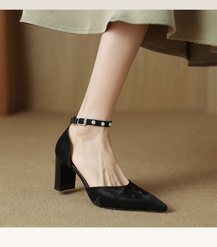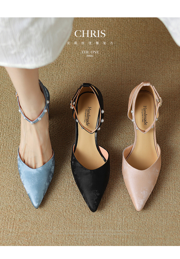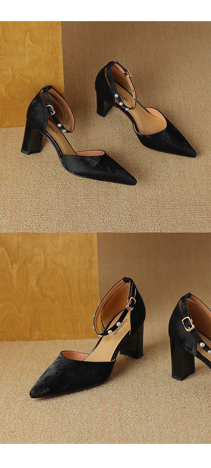 【预售5天】法式单鞋女中跟粗跟2024新款一字扣小高跟尖头百搭仙女风淑女鞋子LD&6738