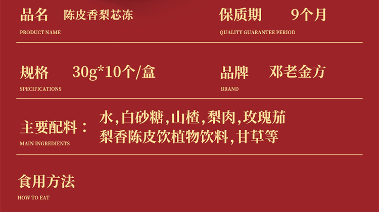 邓老金方陈皮香梨芯冻30g*10袋