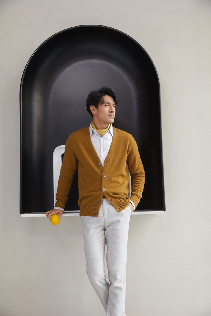 「配色V男开衫」