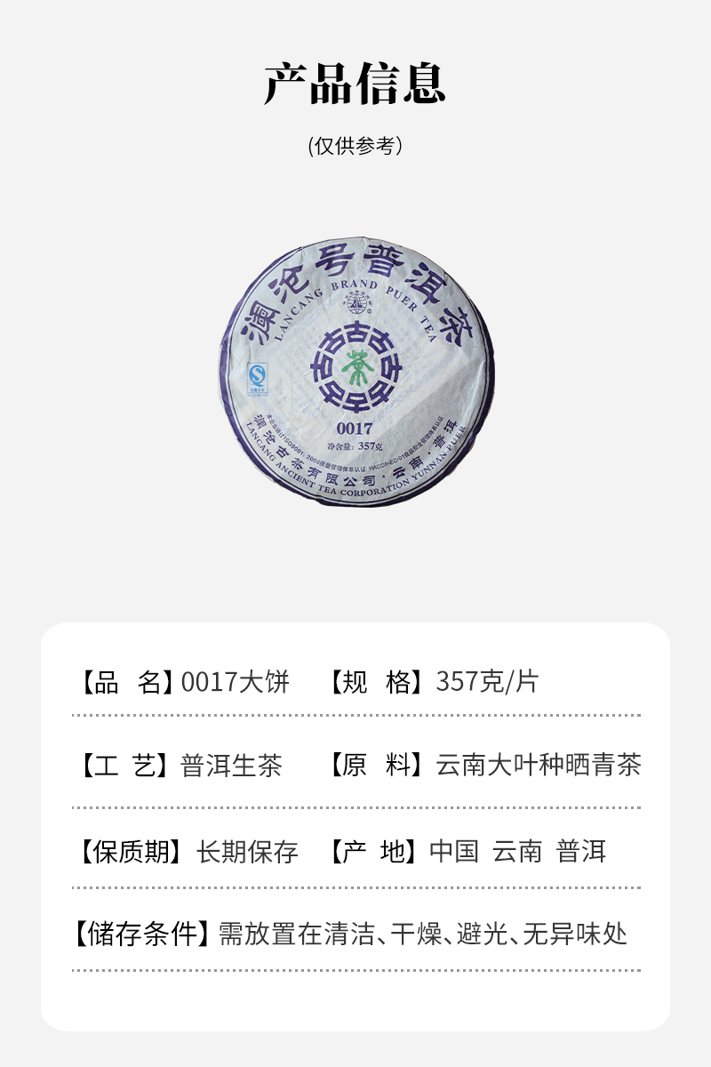 澜沧古茶2007年0017大饼普洱茶生茶云南茶叶乔木老茶干仓16年陈
