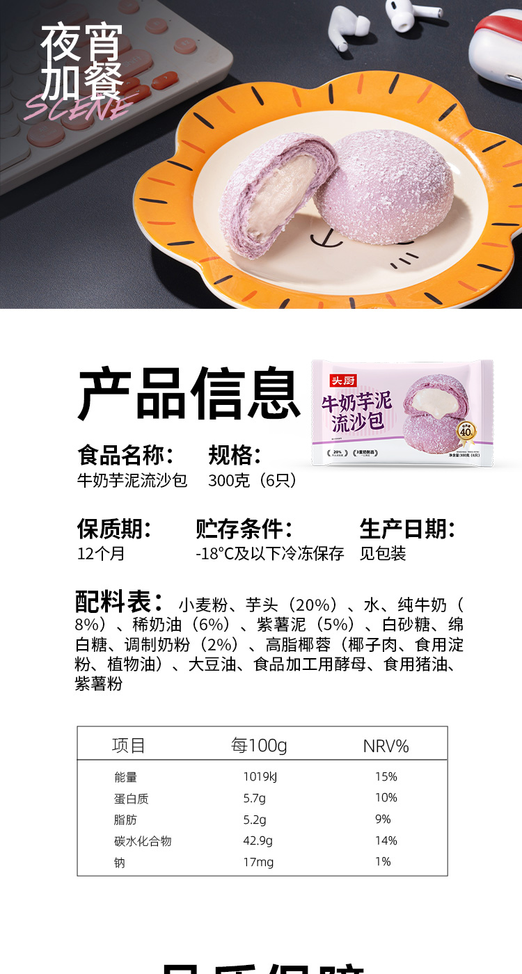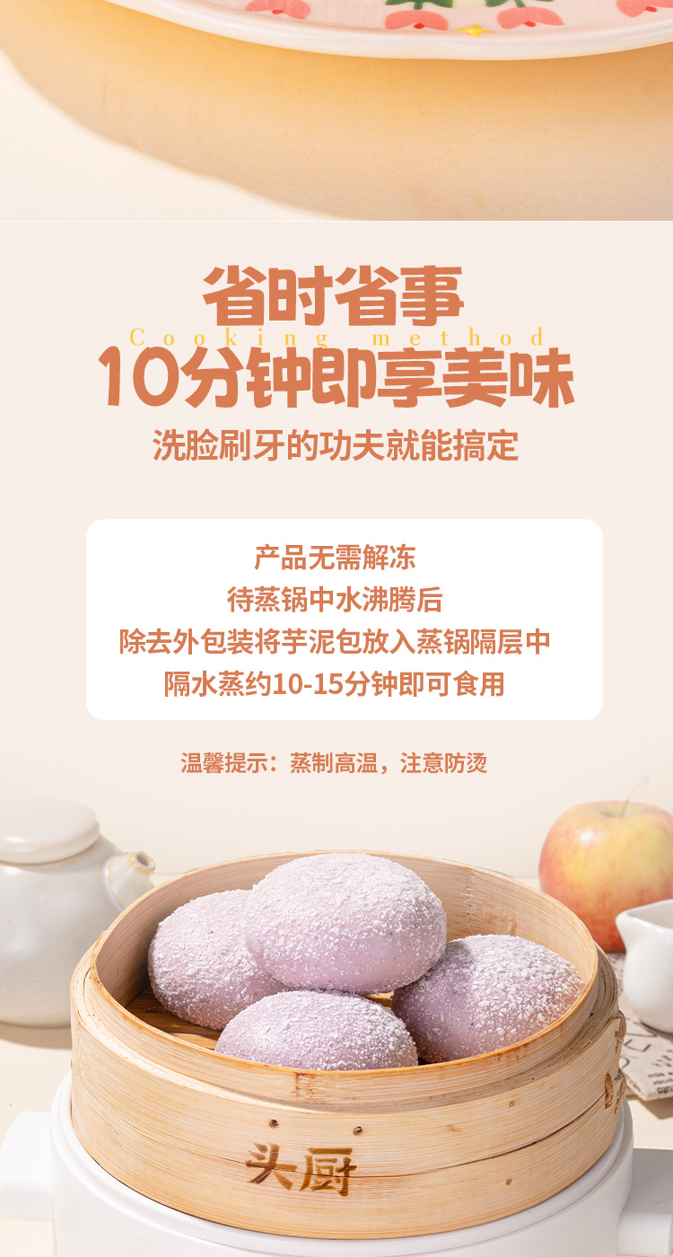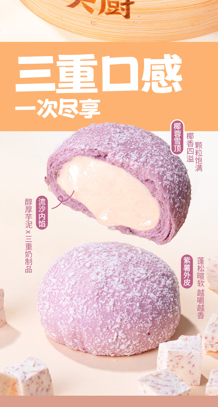 【头厨牛奶芋泥流沙包】营养早餐冷冻半成品加热即食面点