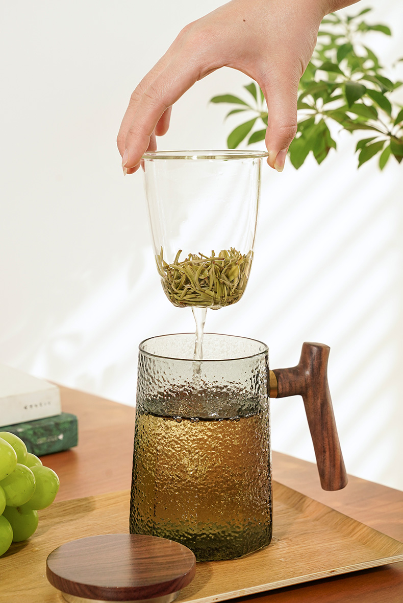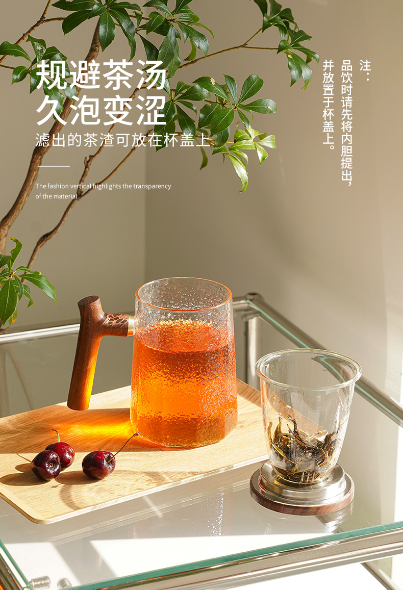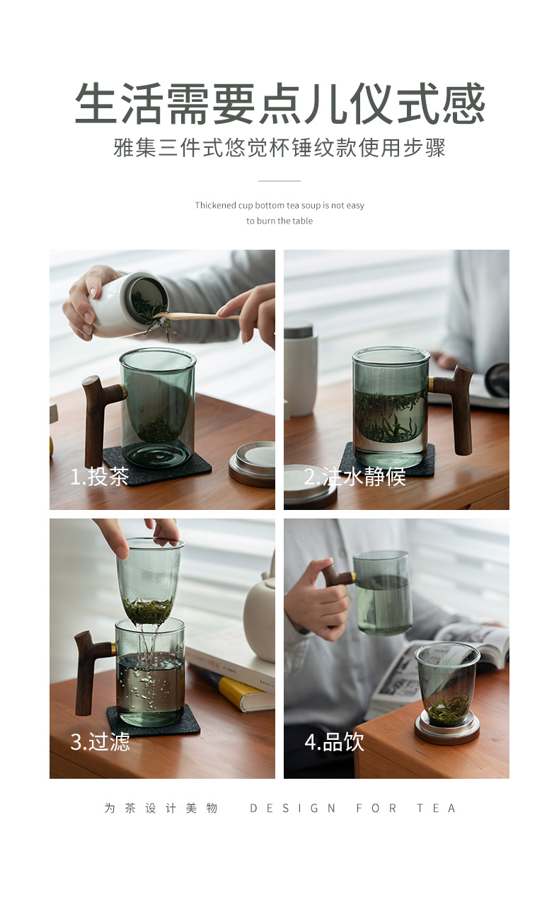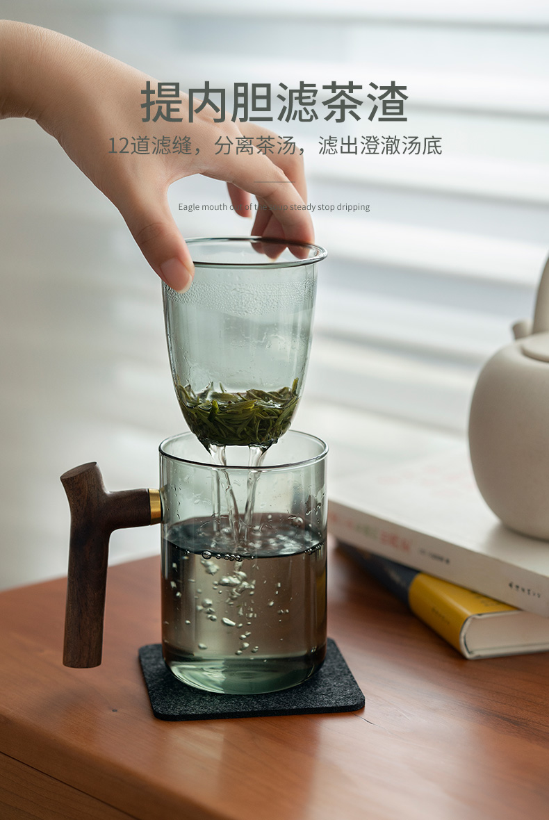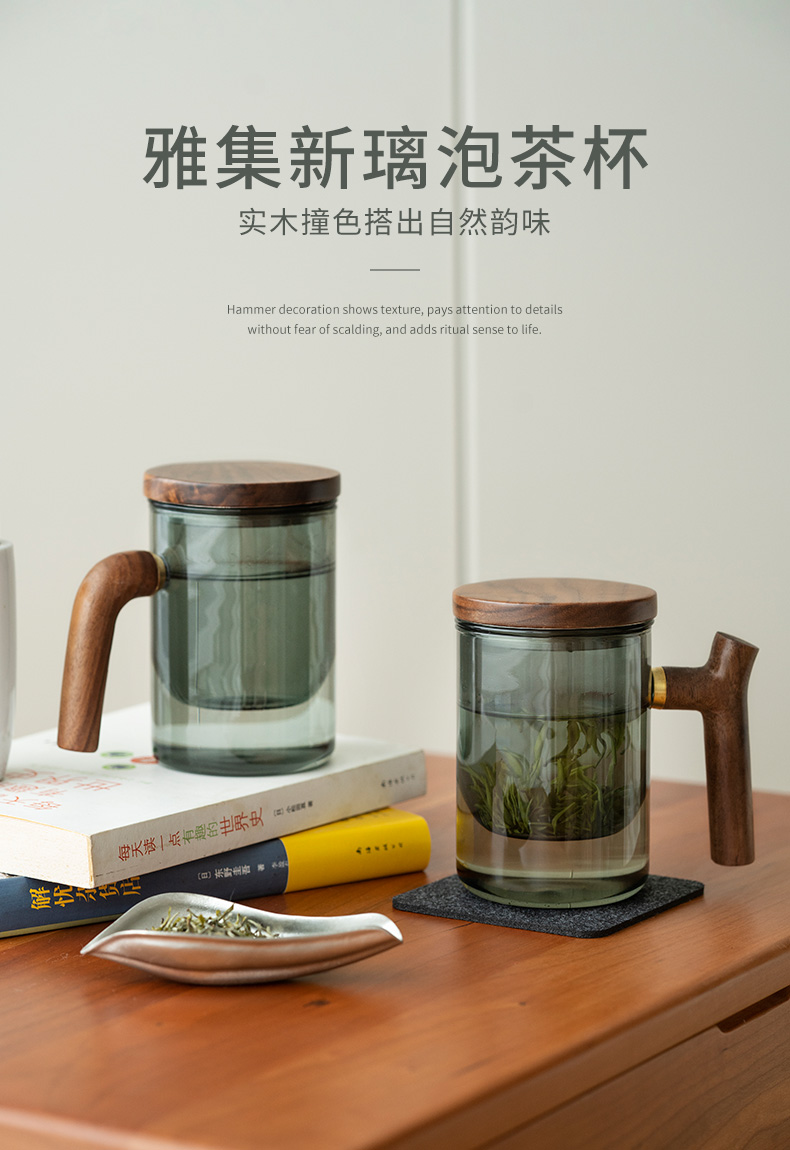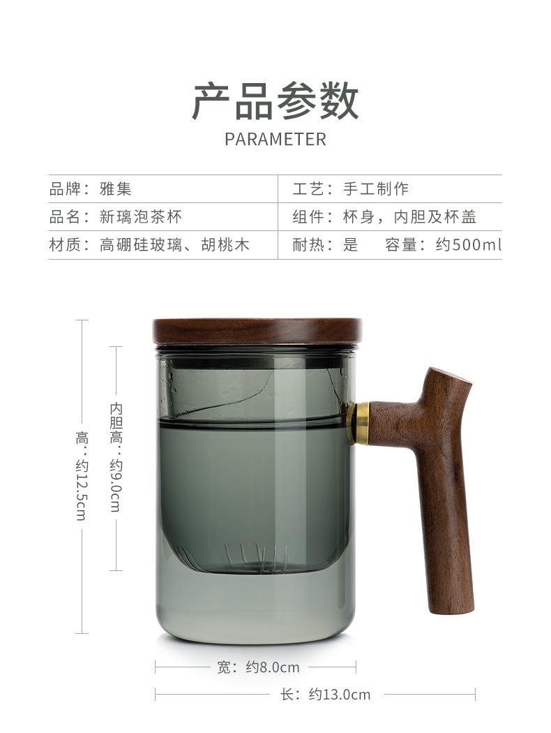 雅集茶具 新璃泡茶杯 筑茗泡茶杯 加厚办公室玻璃茶杯日式泡茶杯茶水分离杯子家用花茶杯