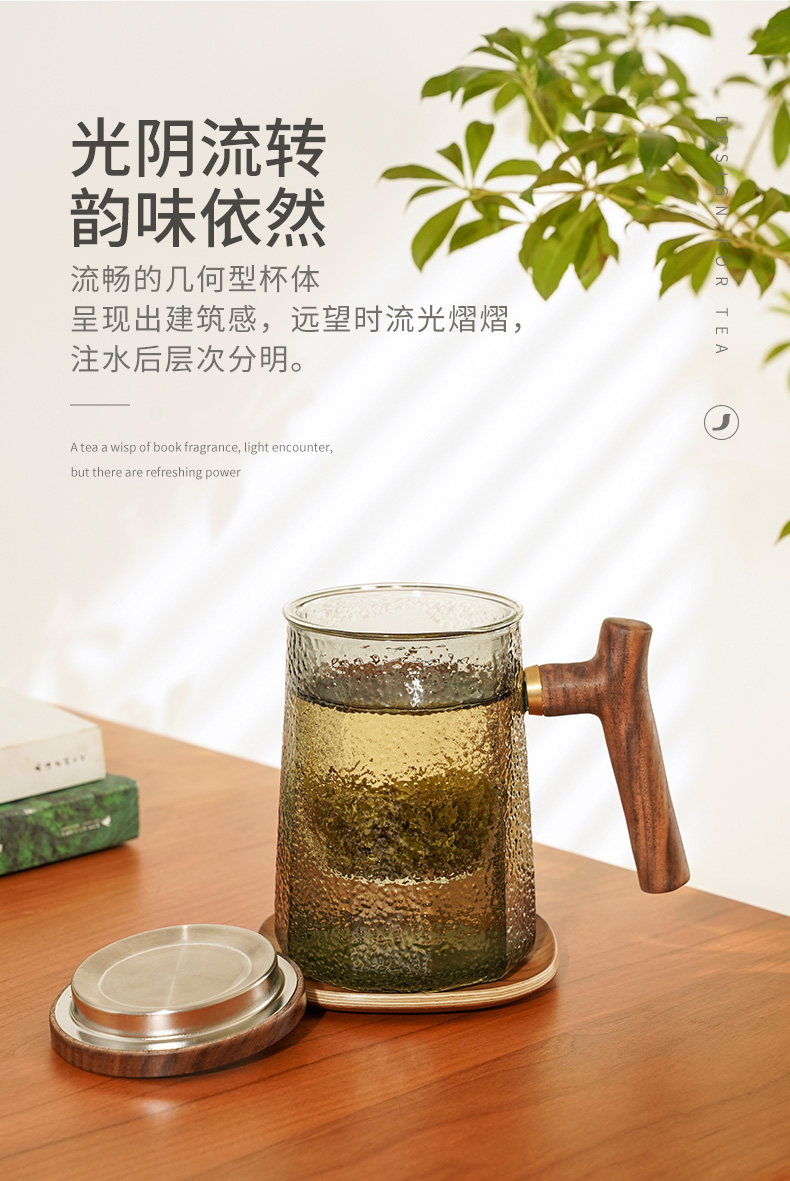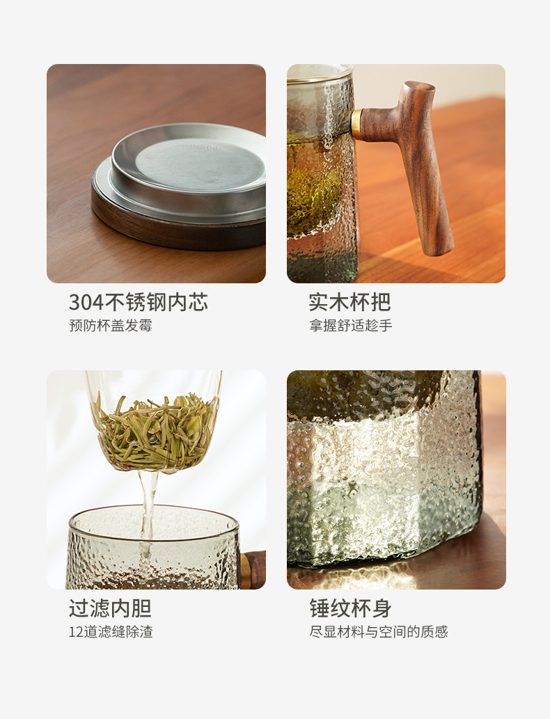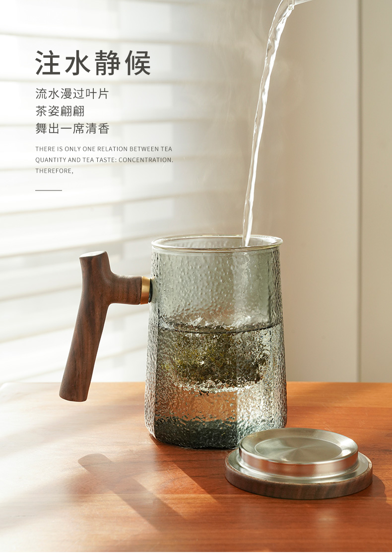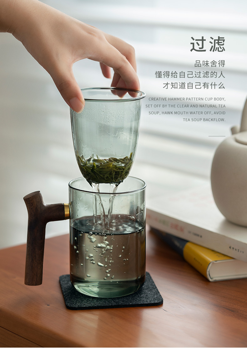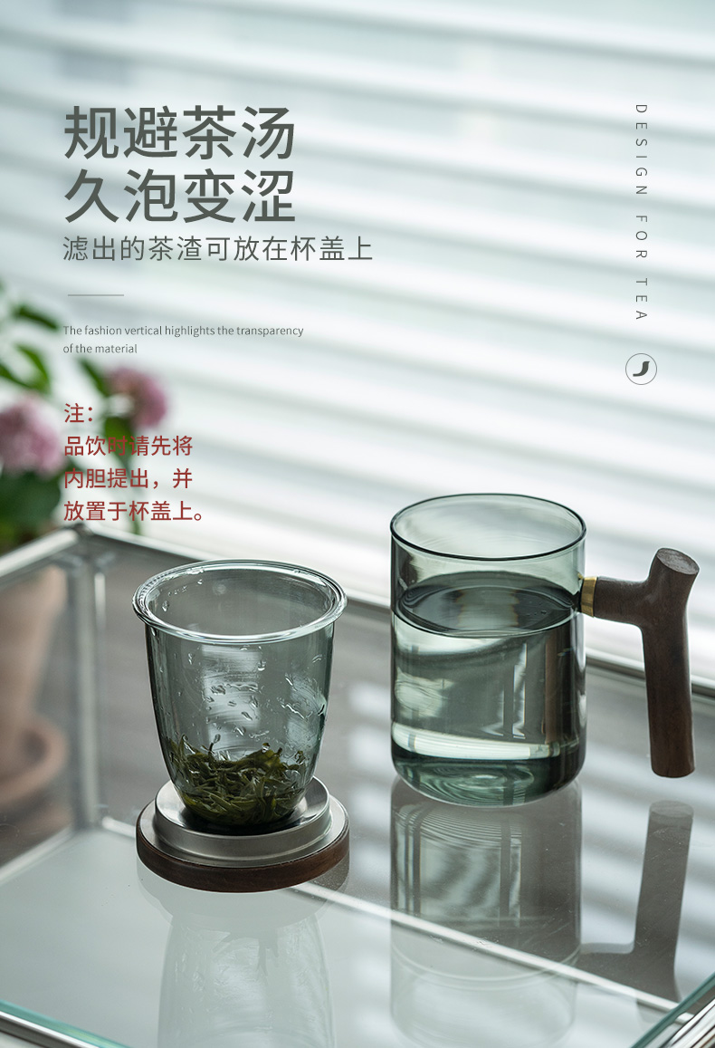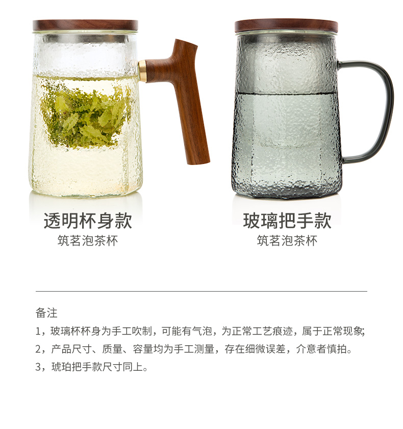 雅集茶具 新璃泡茶杯 筑茗泡茶杯 加厚办公室玻璃茶杯日式泡茶杯茶水分离杯子家用花茶杯