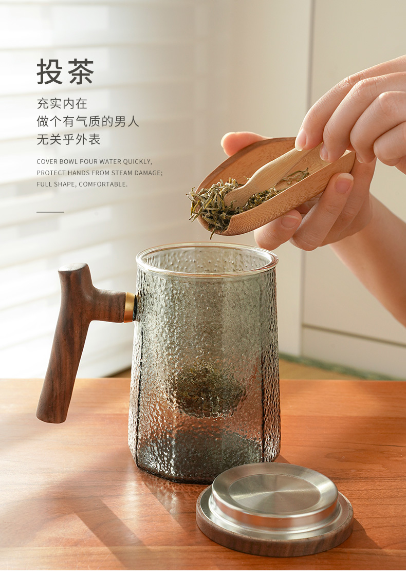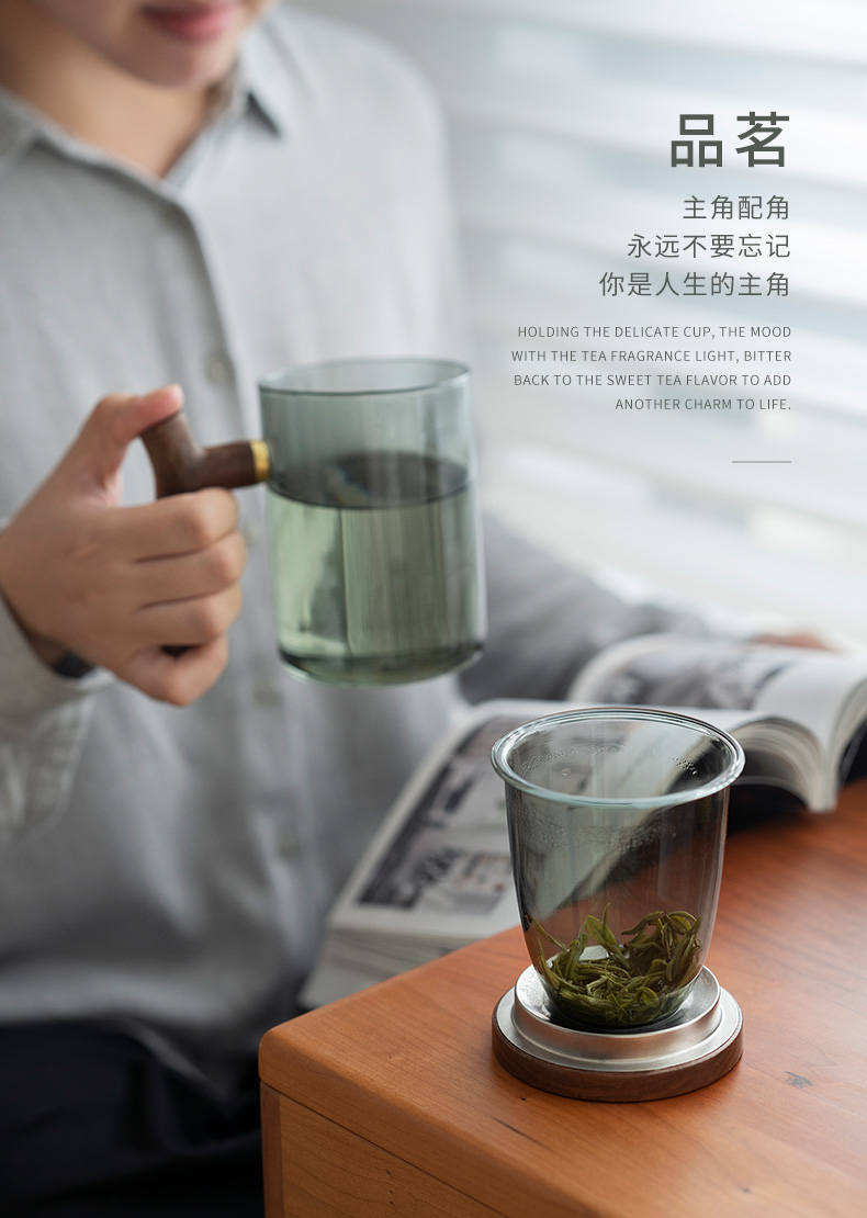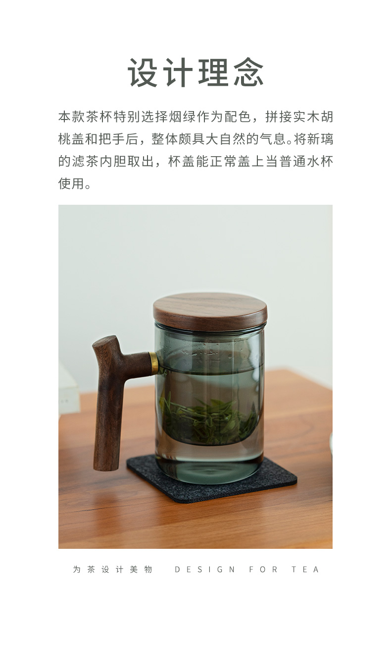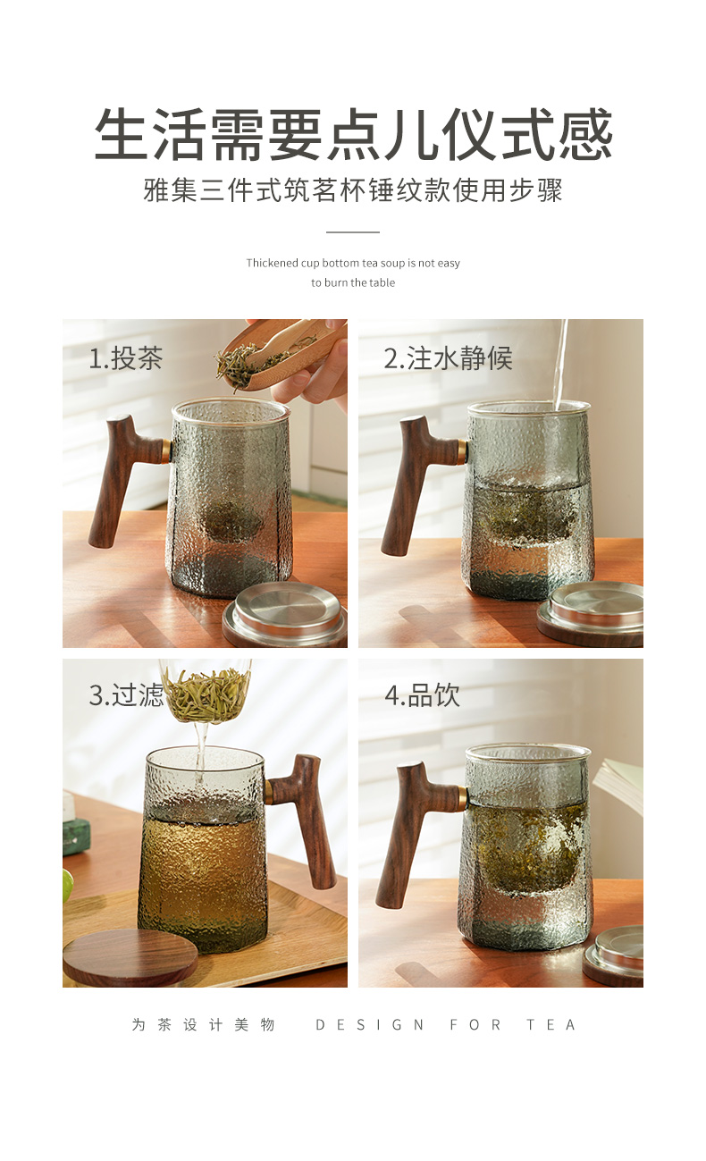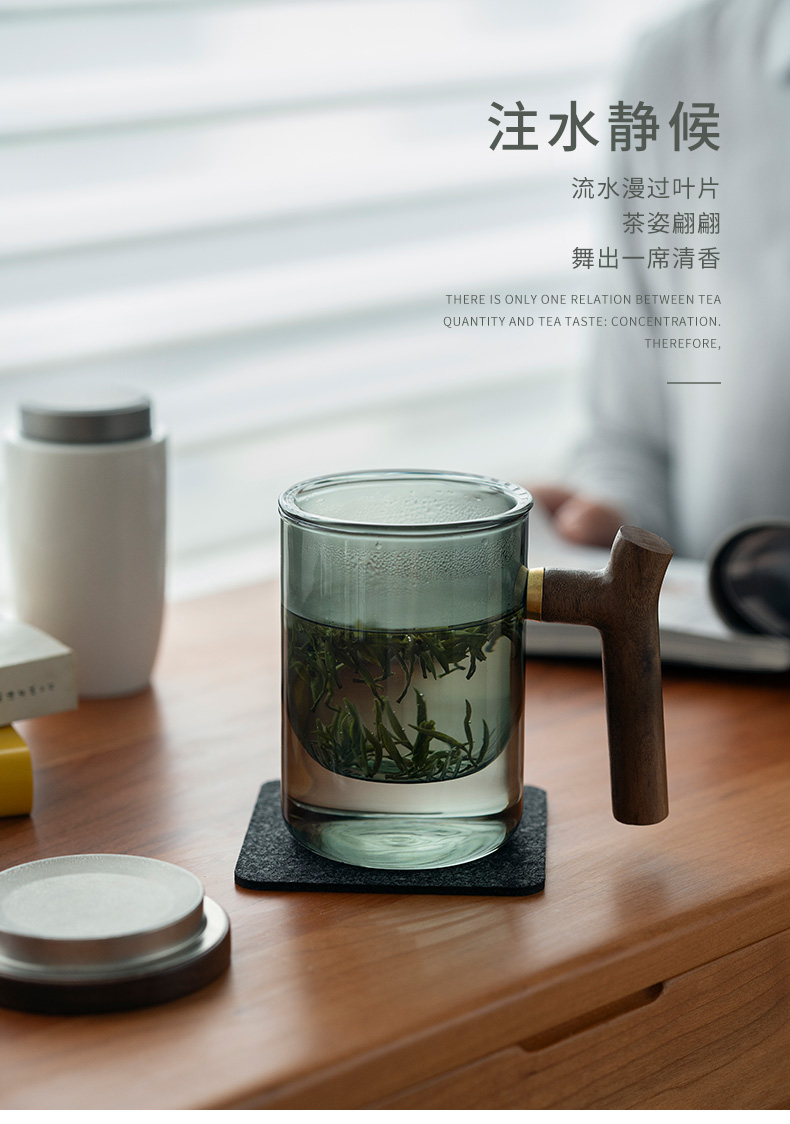 雅集茶具 新璃泡茶杯 筑茗泡茶杯 加厚办公室玻璃茶杯日式泡茶杯茶水分离杯子家用花茶杯