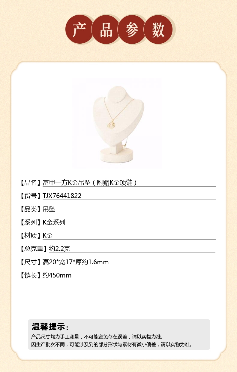 【品名】富甲一方K金吊坠(附赠K金项链)