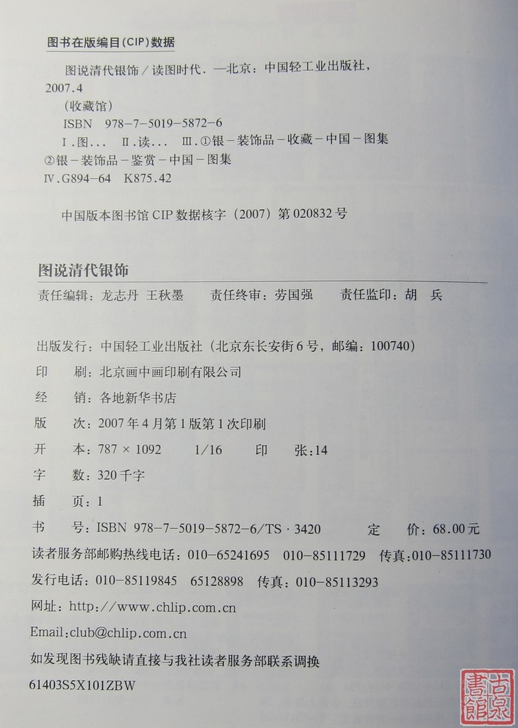 内容简介:本书所收录的银饰品,大都具有较强的民间色彩。此外,也收录了一些贵族饰品,比如镶有珊瑚、宝石、翠玉,贴以鸟羽的蒙古族女性头饰——“点翠”,用珍珠、玛瑙镶嵌的发钗等。本书通过优美流畅的文字,精美珍贵的图片,让您充分地领略银饰的独特魅力和深厚的文化韵味,感受中国古代劳动人民对生活的无比热爱之情,提高对银饰的鉴赏能力。