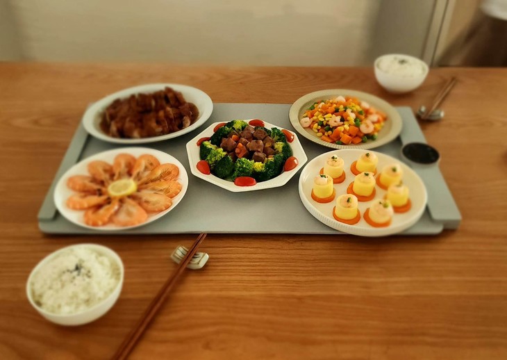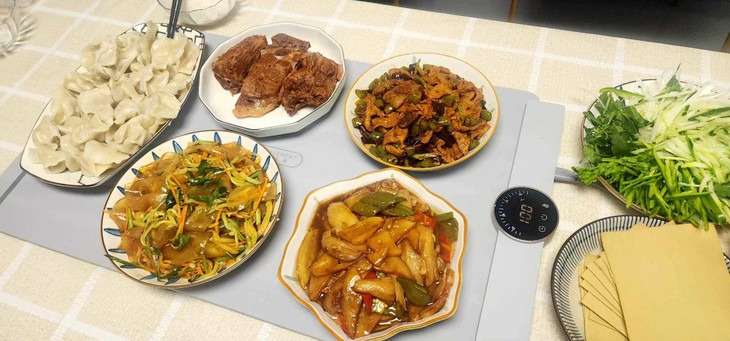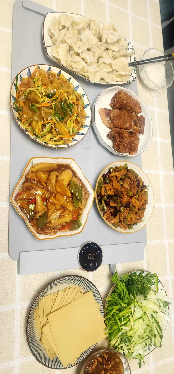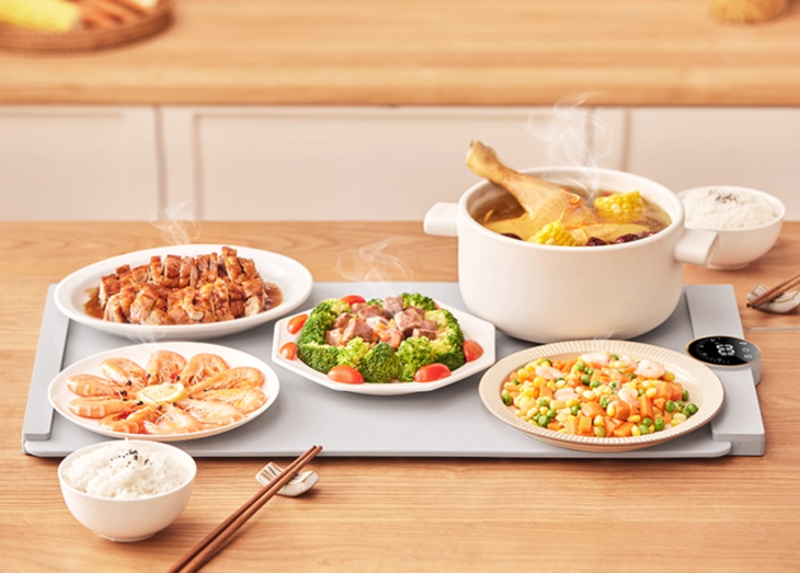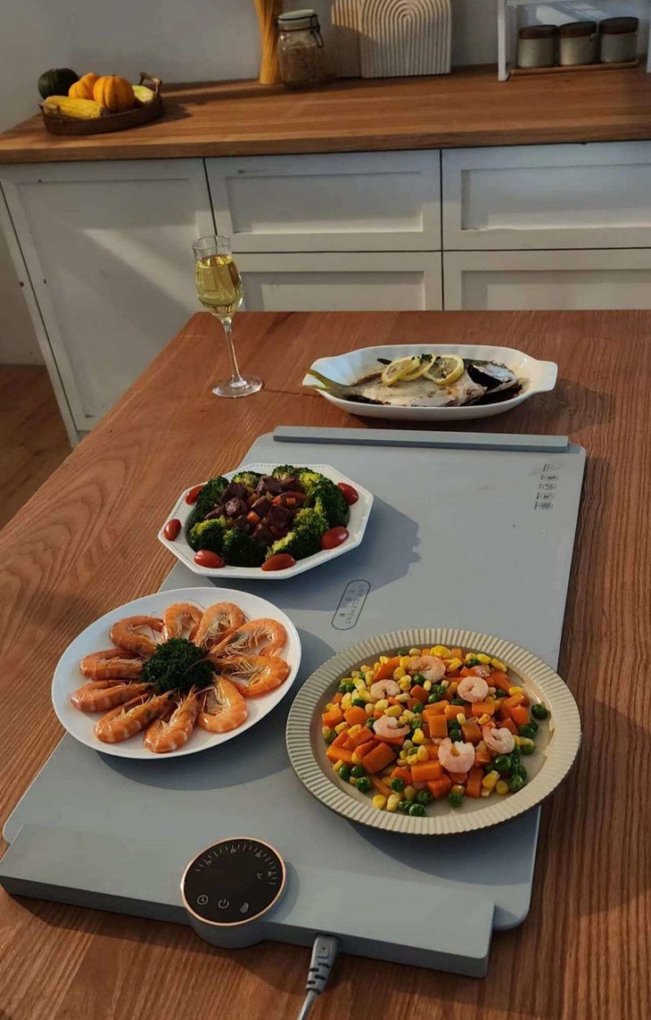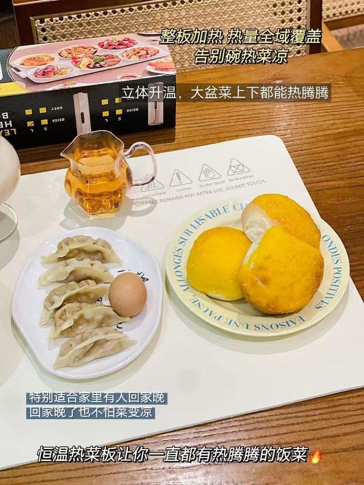 🎈家里也做了一大桌丰盛的菜式, 铺上暖菜板,做完整桌菜, 前面的菜依旧温热可口, 一边闲聊家常一边吃热乎乎的美食。 4小时控温预约,热聊不断 饭菜放在上面,一直都是热乎乎的, 就像刚出锅一样,不管我们吃饭速度快慢,都不用担心菜会凉掉。