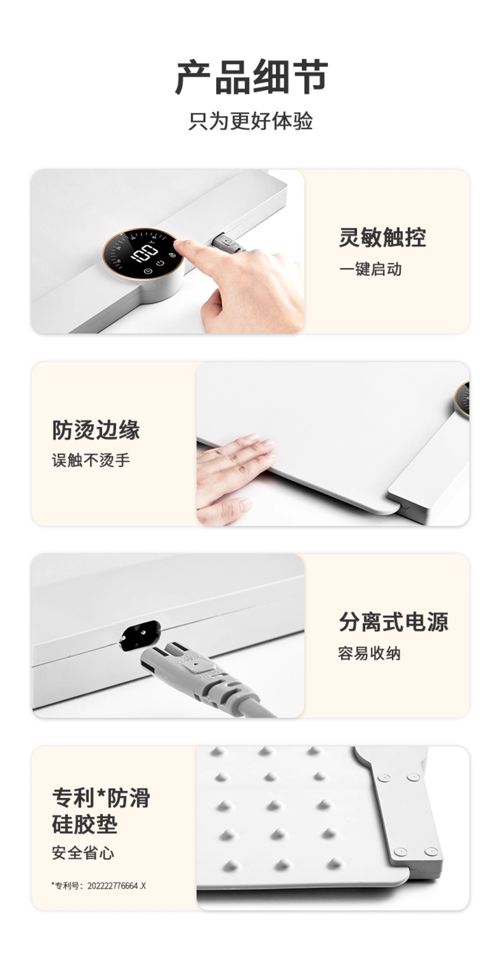 一片式安全硅胶暖菜板,一抹就干净,10秒速热, 还能用来解冻食材、暖面膜、暖衣服等,不挑餐具万物均可暖! 🎈食品级航天硅胶材质,可卷起收纳的暖菜板,节省空间~ 🎈50~100°C恒温调节,简单方便 🎈1-4H控温预约 晚归也有热乎饭