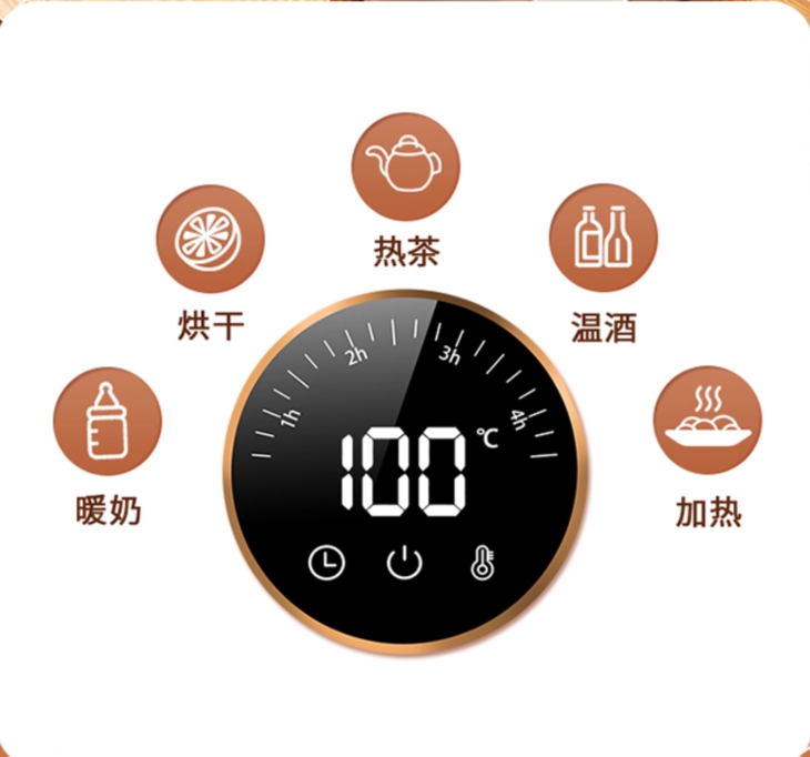✔60度至100度温度调节 5段档位使用场景更广。 👉60-70°C:慢解冻、暖饮用水、暖奶粉、暖牛奶、暖辅食。 👉70-80°C:快速解冻、暖茶、暖甜品、暖袜子、暖衣服。 👉80-90℃C:烘干、保温饭菜、加热饭菜 👉90-100℃:速热暖汤锅、保温热水