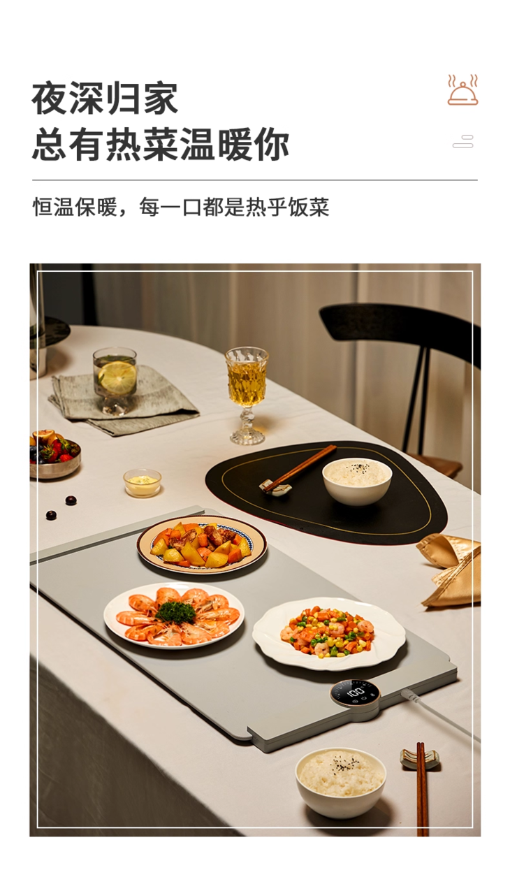 冬日的严寒渐渐逼近,每个家庭都在寻找一种温暖的方式来抵抗寒冷🥶 除了人要保暖,我们的饭菜也不能“着凉”! 对比目前其他品牌的暖菜板 「硅胶暖菜板」就很适合冬天暖菜,8秒全局速热💞,放在角落都能保温,慢慢吃,也不怕菜冷了!✨