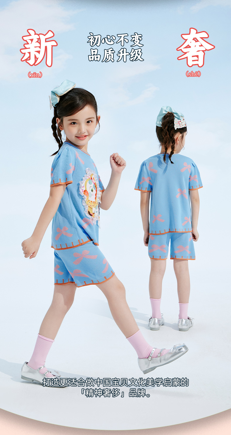 年衣童装短袖套装2025夏新款洋气时髦国风全糖主义套装