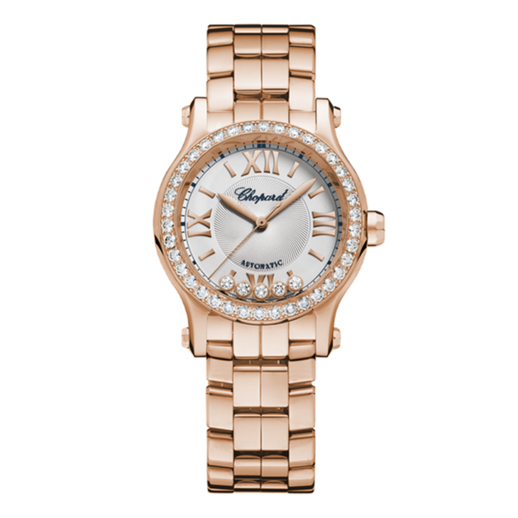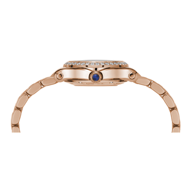 镜面材质 | 蓝宝石水晶玻璃 | 表盘 | 18K玫瑰金镶钻表壳 银色与玑镂饰纹中心表盘 罗马文及条形时标,5钻-钻石1.26克拉 透底,透明蓝宝石底盖 |