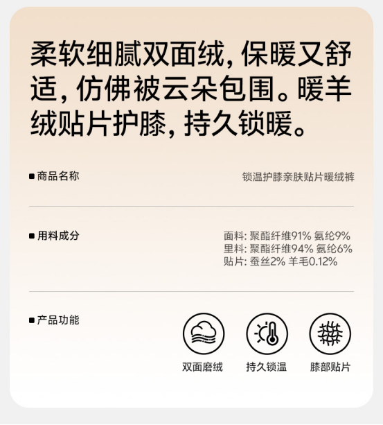 今天上架的是保暖裤 面料采用自发热面料 面料的细腻度 非常好非常柔软 采用无骨拼接的做工工艺