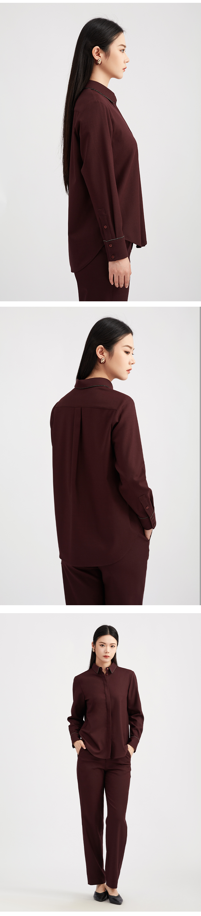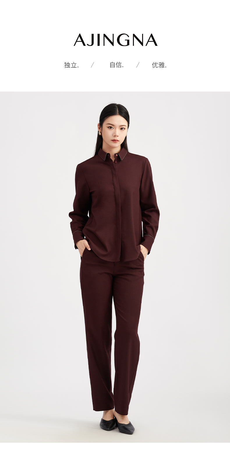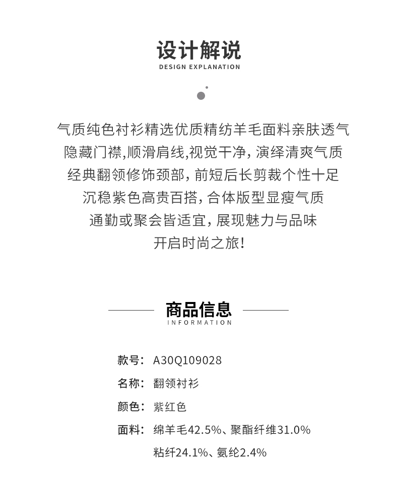 【商场同款】阿菁娜秋季新款设计感羊毛衬衫前短后长设计气质小众穿搭A30Q109028