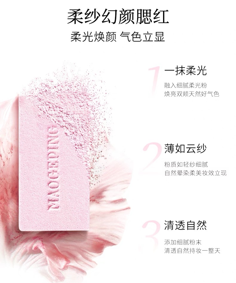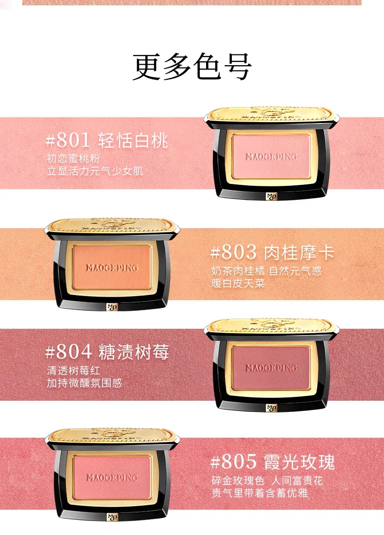 毛戈平柔纱幻颜腮红801#轻恬白桃 802#百搭裸杏色 柔光焕颜 气色立显膨胀色收缩色