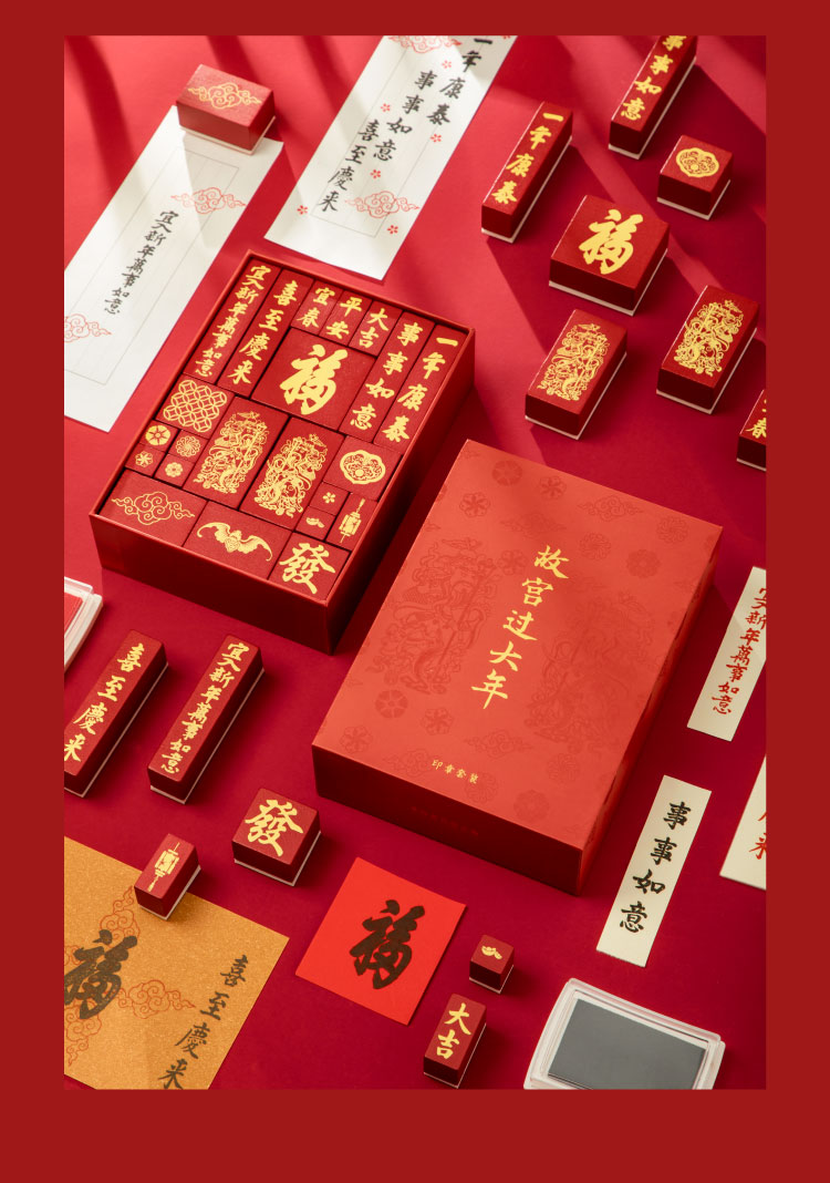 【故宫文创】过大年新年书法吉语刻字印章套装