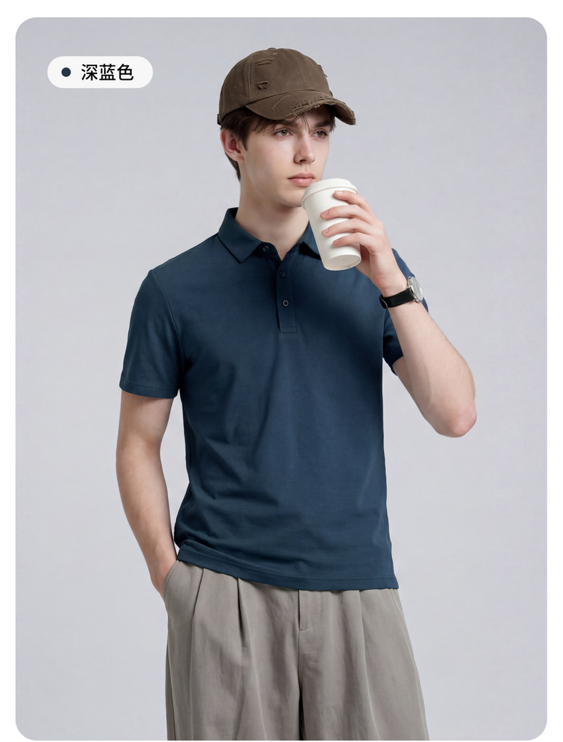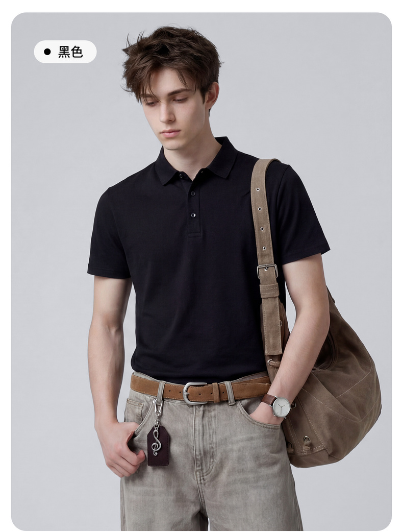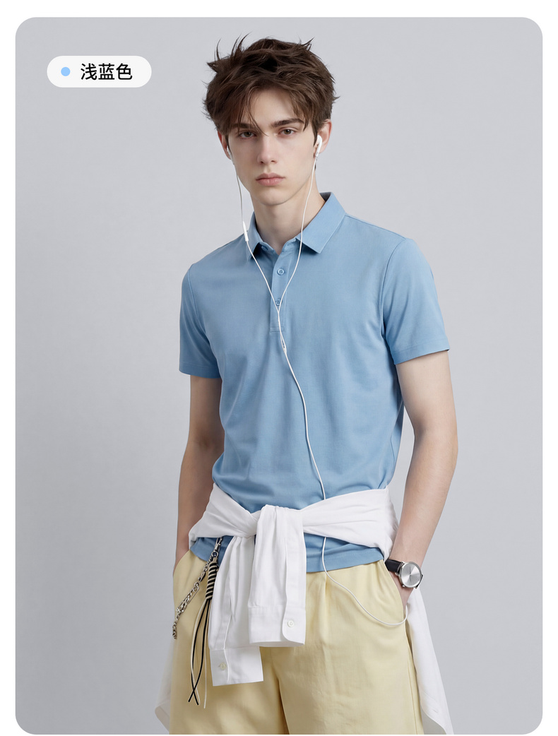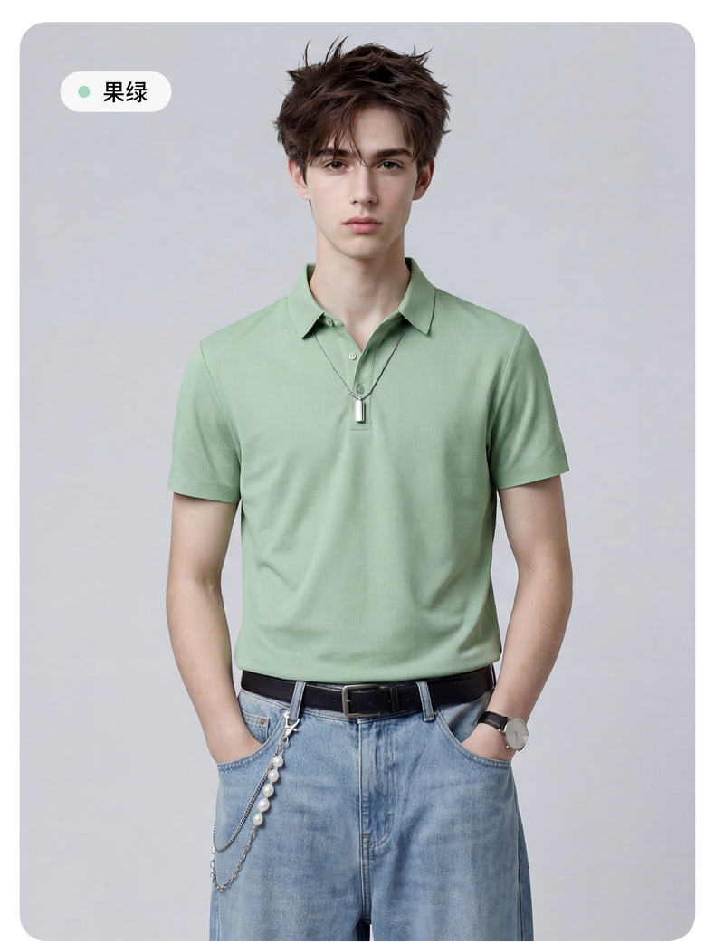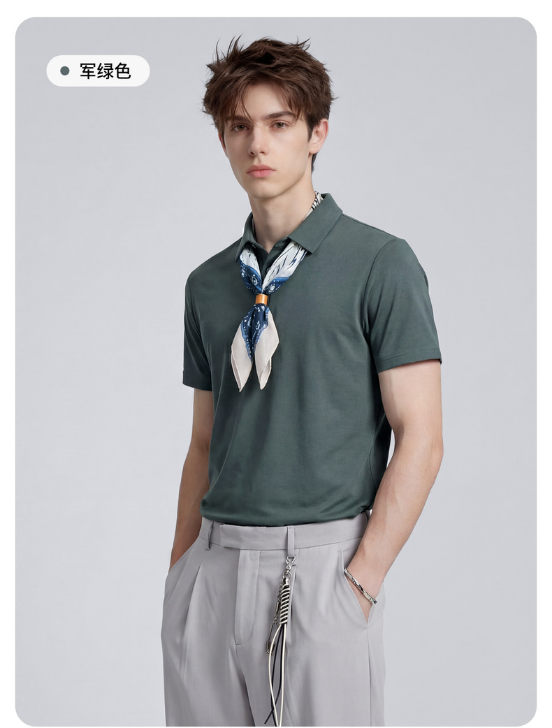 【含桑蚕丝】圣得西男50S纱线针织POLO衫2025秋季款经典翻领上衣