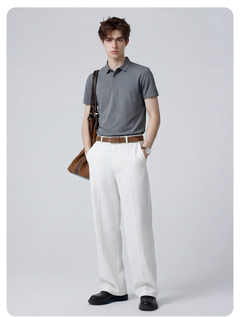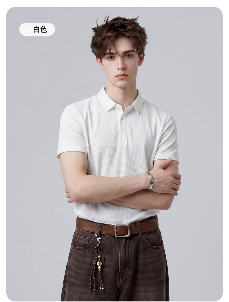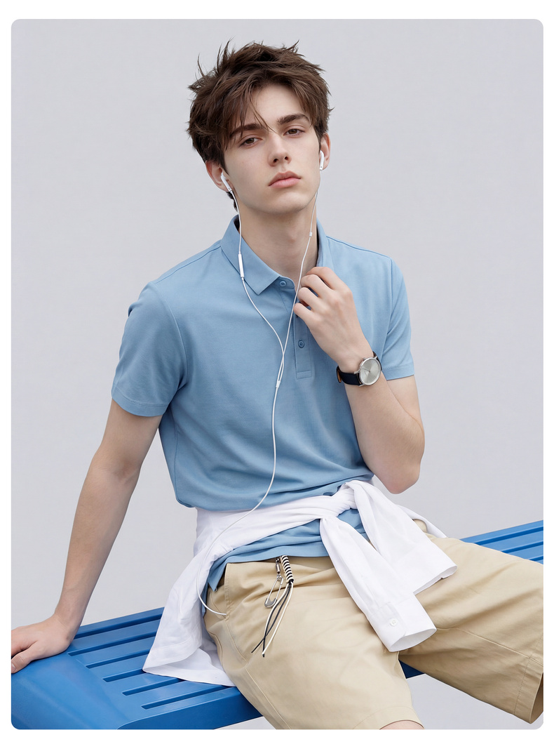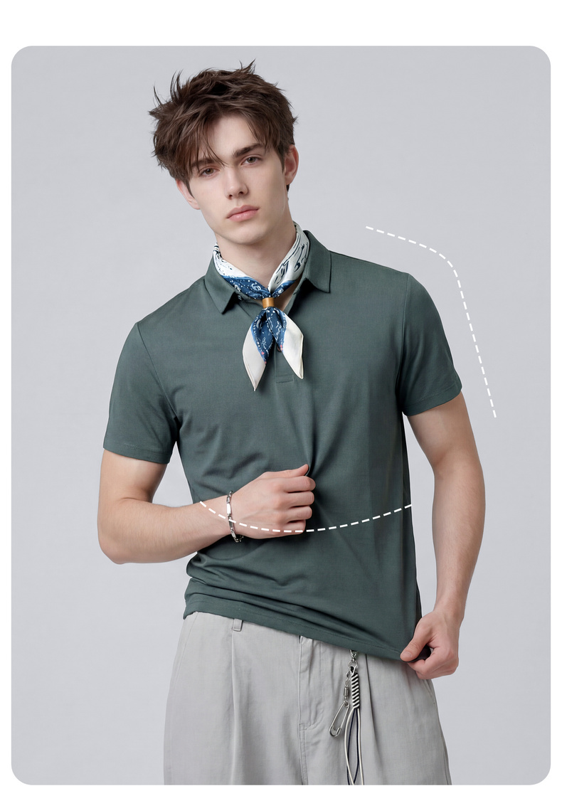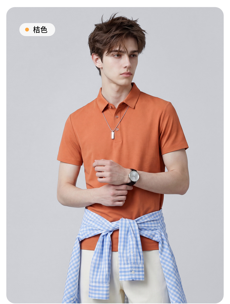 【含桑蚕丝】圣得西男50S纱线针织POLO衫2025秋季款经典翻领上衣