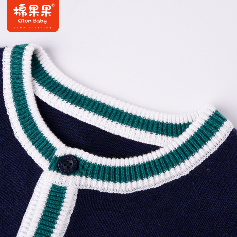 商场同款棉果果秋季新款男童毛衣全棉对开棉线学院风外套M312161222536