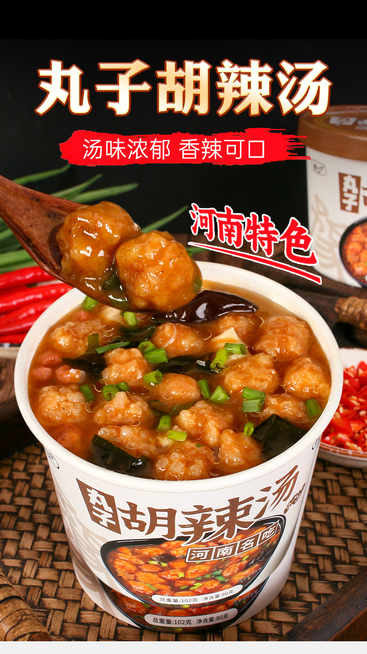 【45.9限时抢到手12盒!河南特丸子胡辣汤】一泡一拌,即享美味地道风味,免煮早餐夜宵方便速食汤整箱L