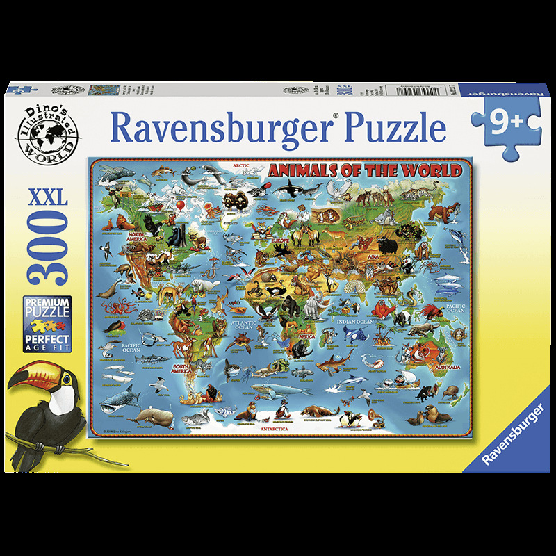 Ravensburger拼图 平面拼图300片世界动物地图RAVC132577