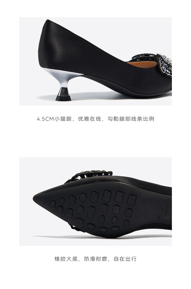 星期六优雅蝴蝶绸缎质感跟鞋SSC3111183