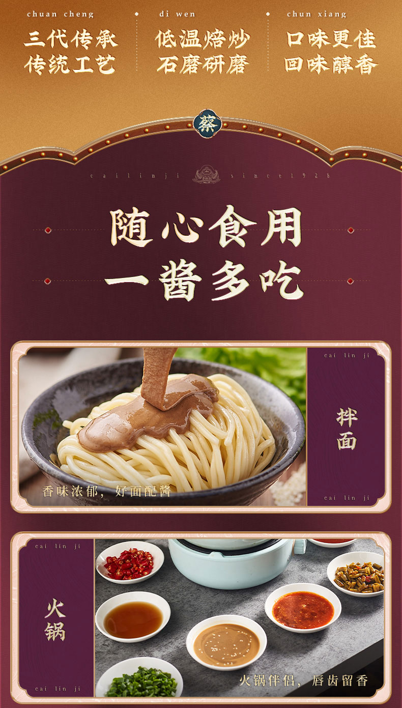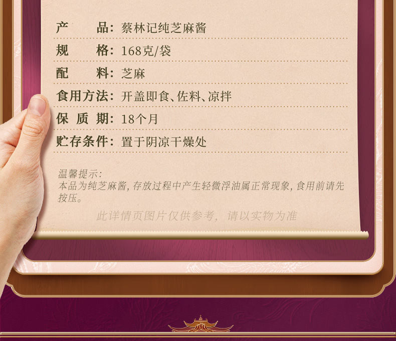 【满99-50 满199-100】蔡林记袋装芝麻酱168g