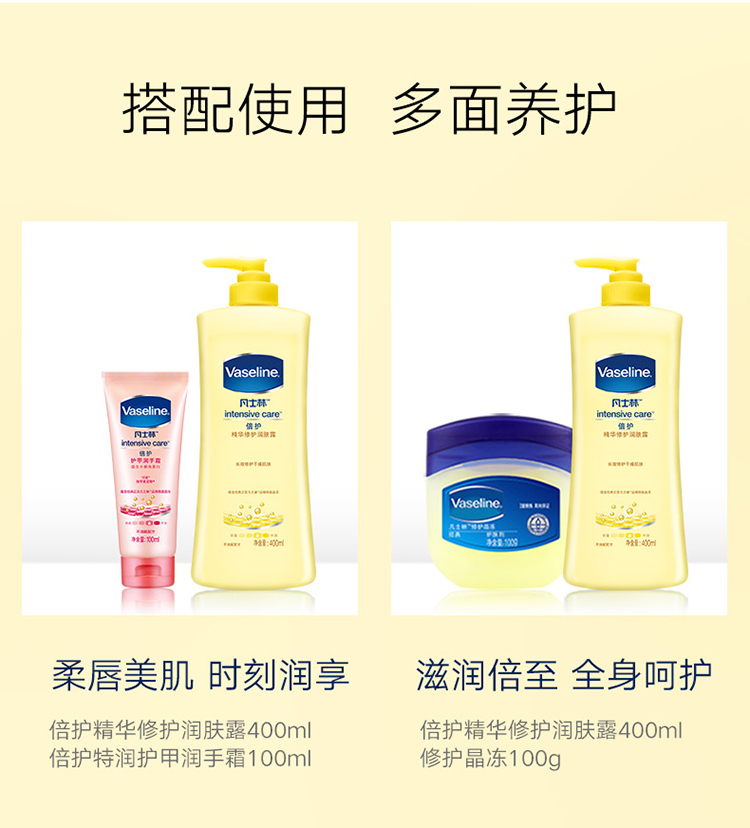 凡士林(Vaseline)润肤露 倍护 精华修护400ml(身体乳/润体乳)(新老包装随机发货)